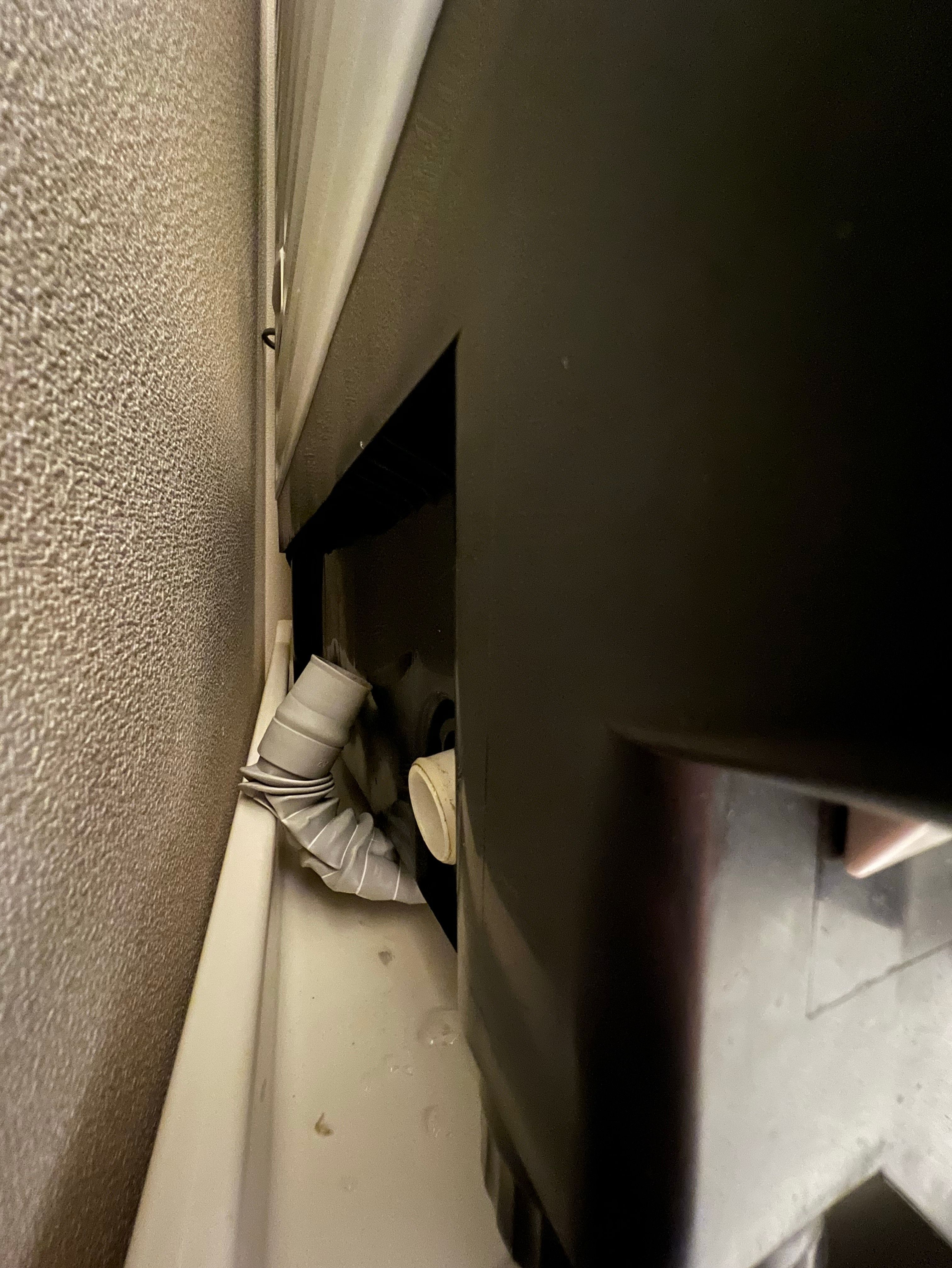 設置が上手く出来ておらず排水ホースが潰れておりました。