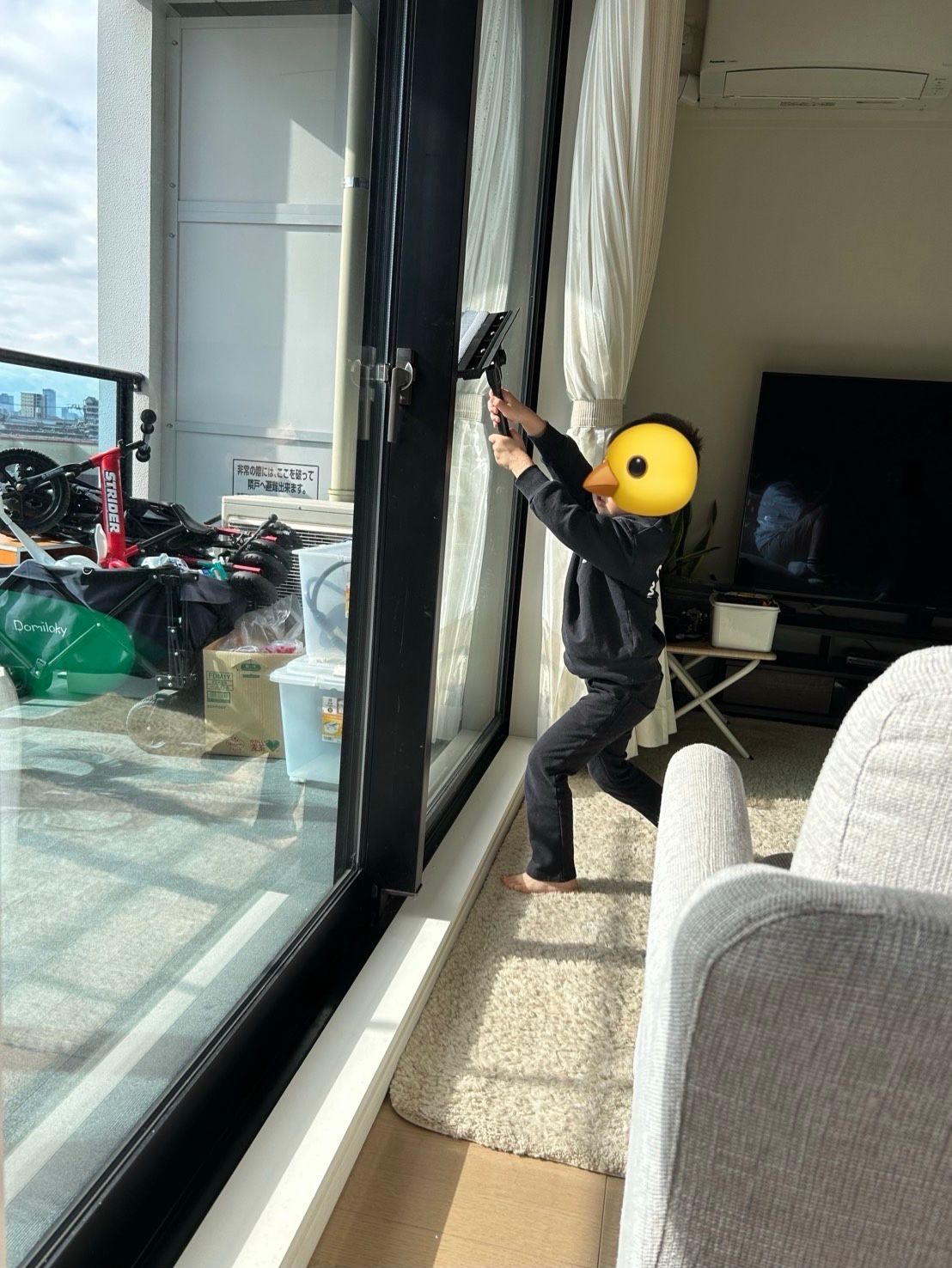 途中、5歳の男の子も窓拭きをお手伝い