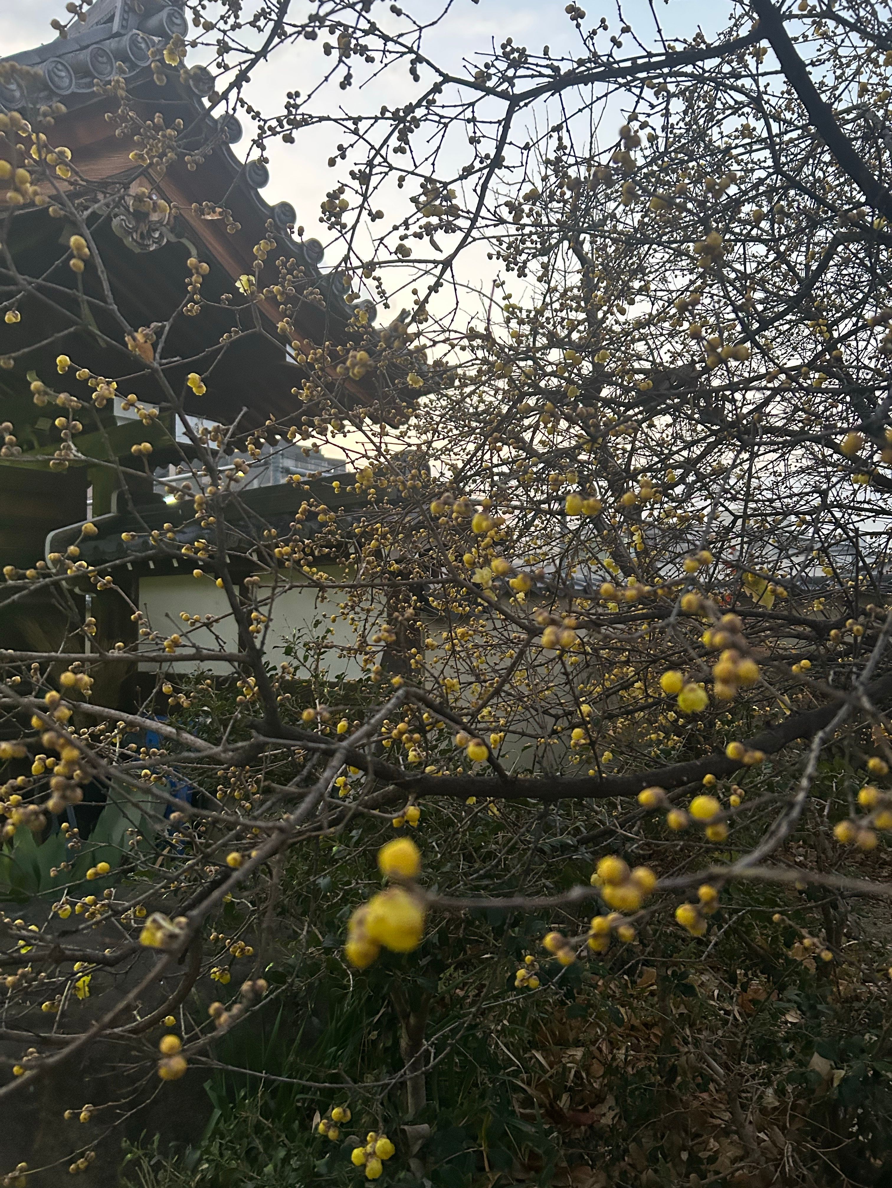 境内では、ろうばいの花が少しずつ