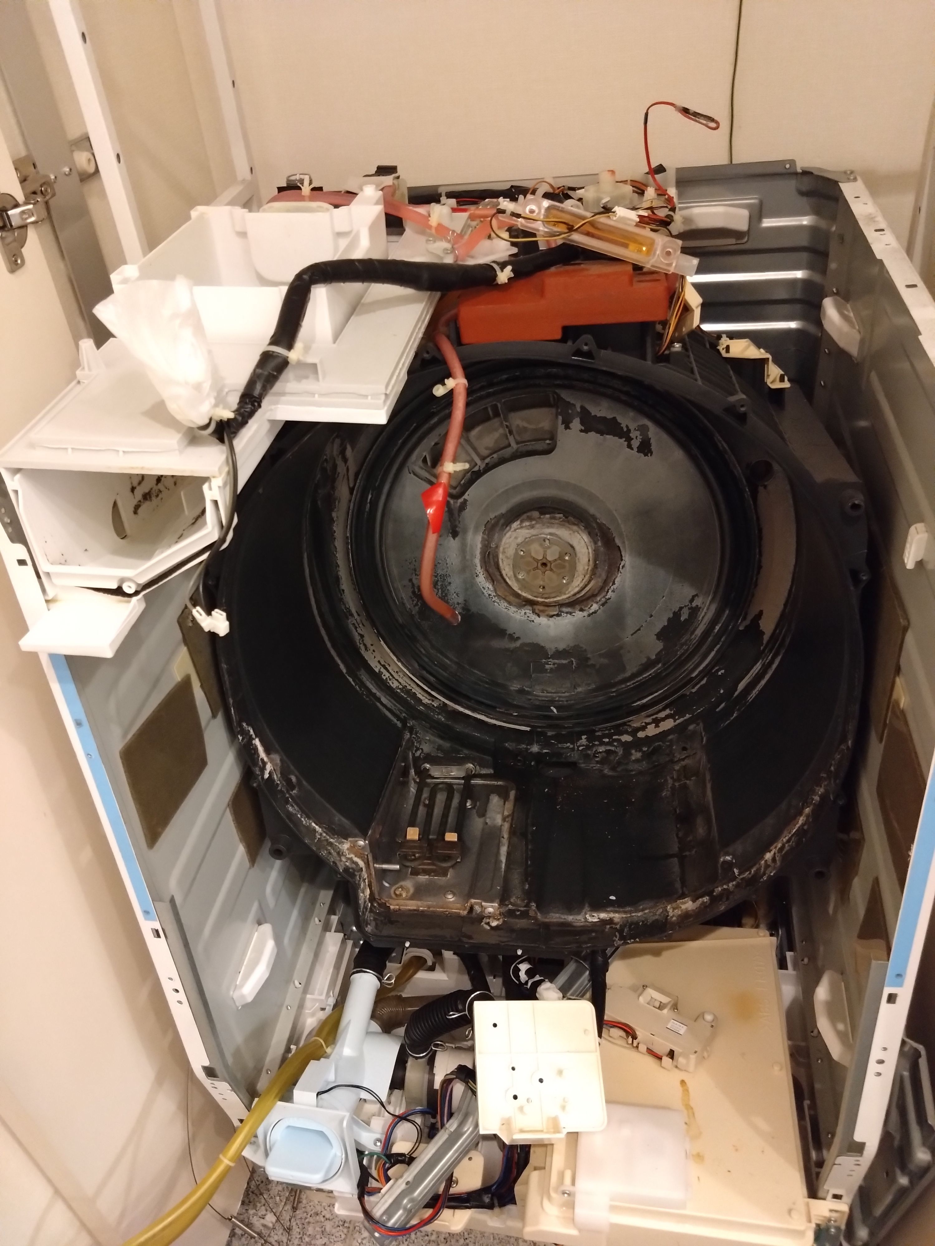 先日も他の業者の洗浄後、匂いが消えていないということで 当店が訪問させていただき分解したところ、ドラムを外さず、裏側を全く洗っていない業者がありました。早くて安くてきちんとできているのであれば問題ないと思いますが、今回のように洗浄したのに再度別の業者を呼ぶということは無駄なことだと思います。(安物買いの銭失い)