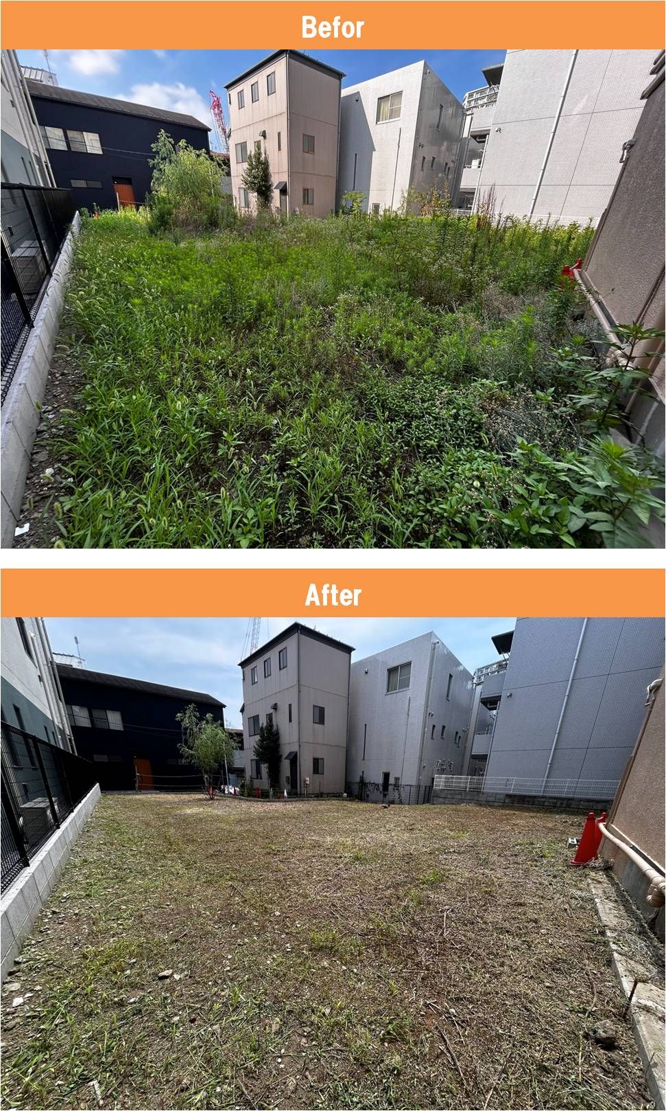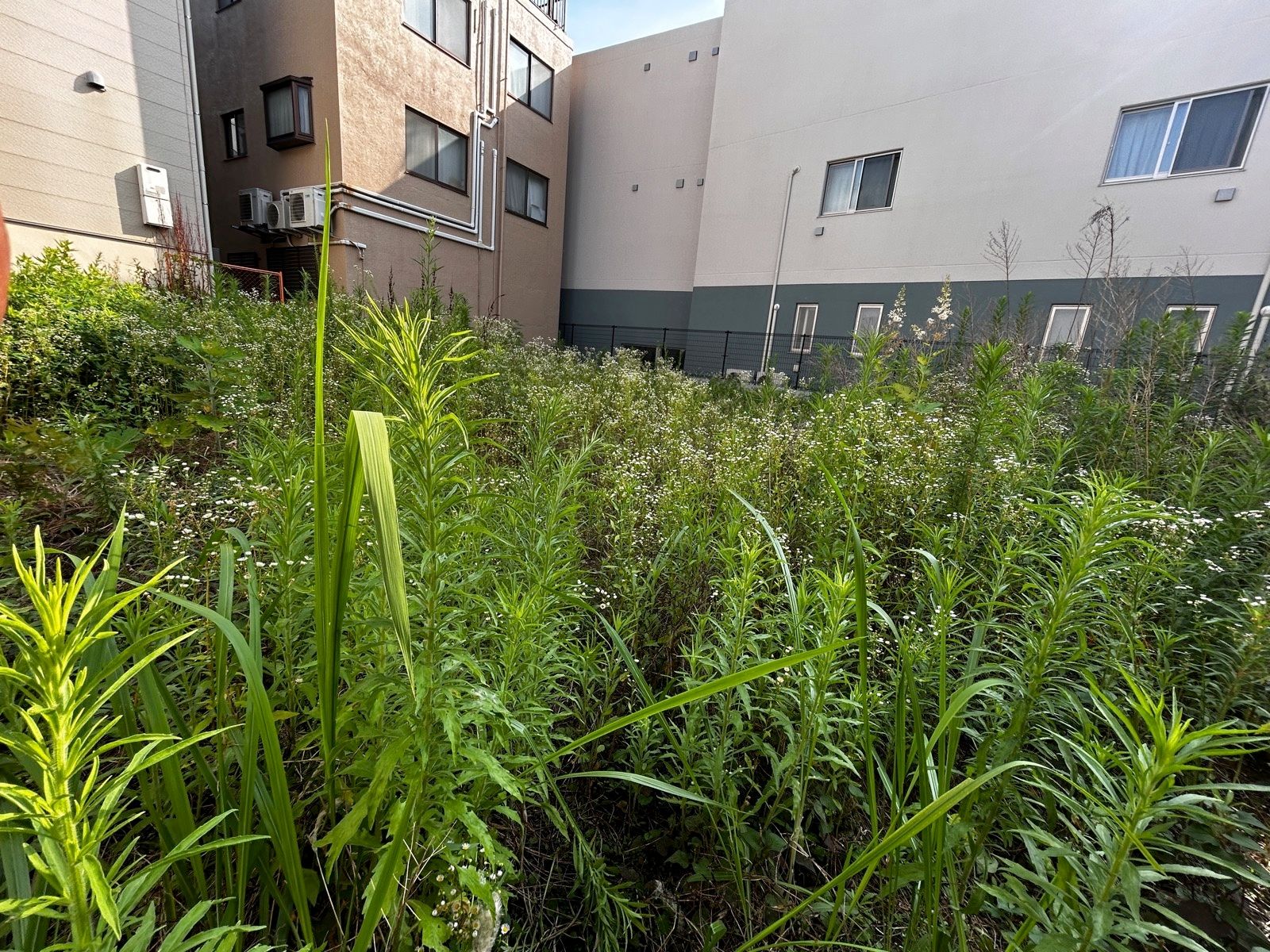浅草寺近くの住宅密集地の隙間にある空き地の除草作業を実施しました。