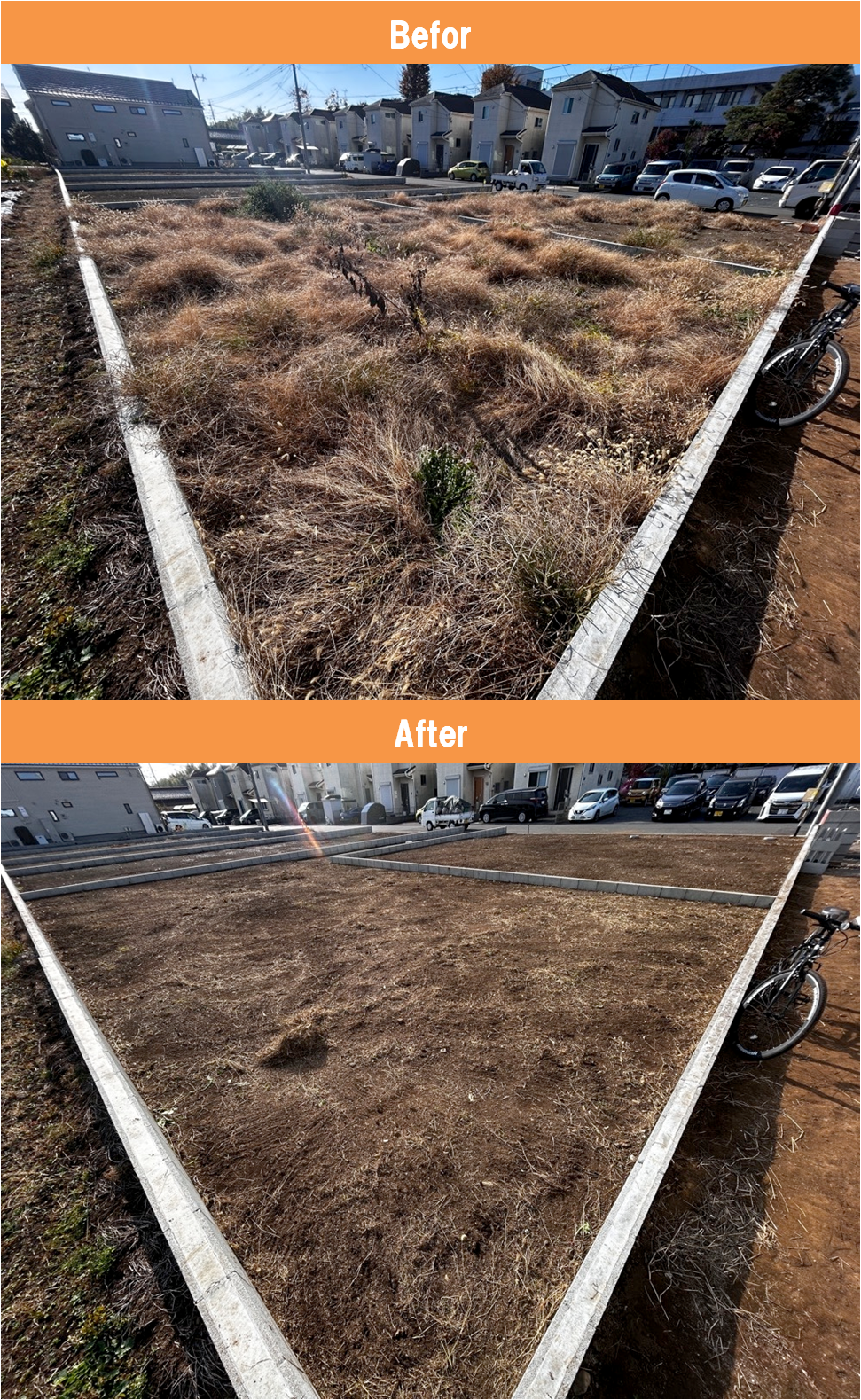 近日基礎工事を控えた建築予定地の除草作業をご依頼頂きました。 2区画分の土地約300㎡の土地です この度はありがとうございました 工事の無事と建物の末永い繁栄をお祈り申し上げます。