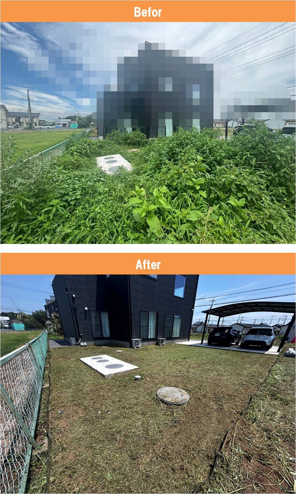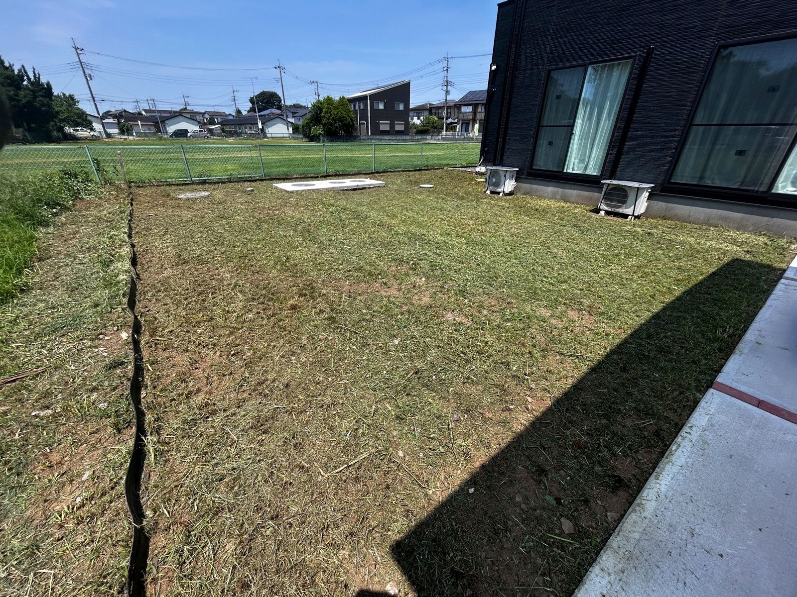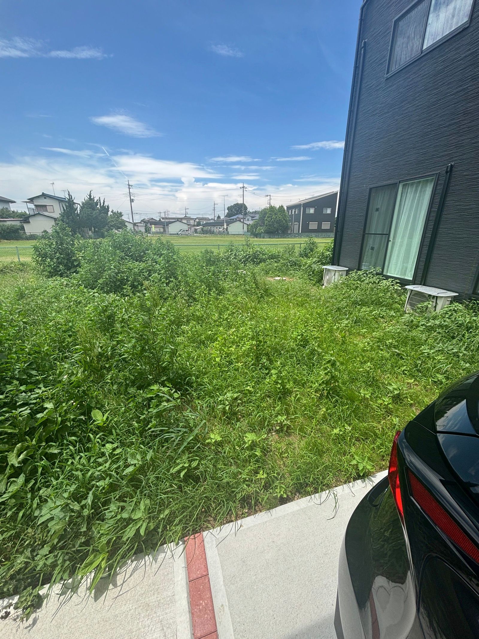 竣工したばかりの新築、人工芝を設置予定のためご依頼頂きました。 石やゴミも回収しましたので、雑草が成長してしまう前に設置頂ければ幸いです。 こんなに広い庭で羨ましい限りです。 この度はありがとうございました。