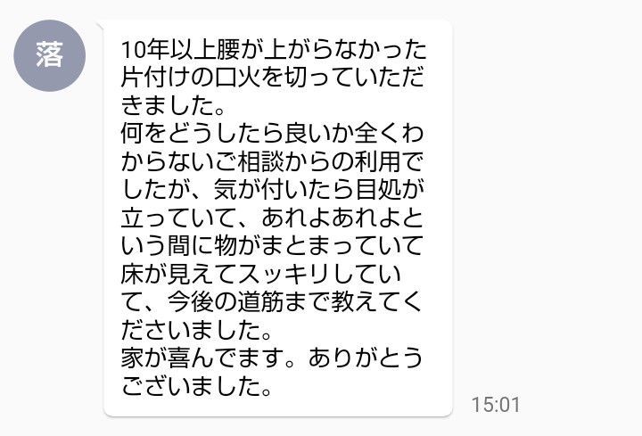 お片付けの538(ファイブスリーエイト)です。本日は、お部屋一部の整理をさせて頂きました。お客様より嬉しいメッセージを頂きました。お客様に喜んで頂けると、とてもハッピーな気持ちになります。弊社をお選び頂き感謝です✨️