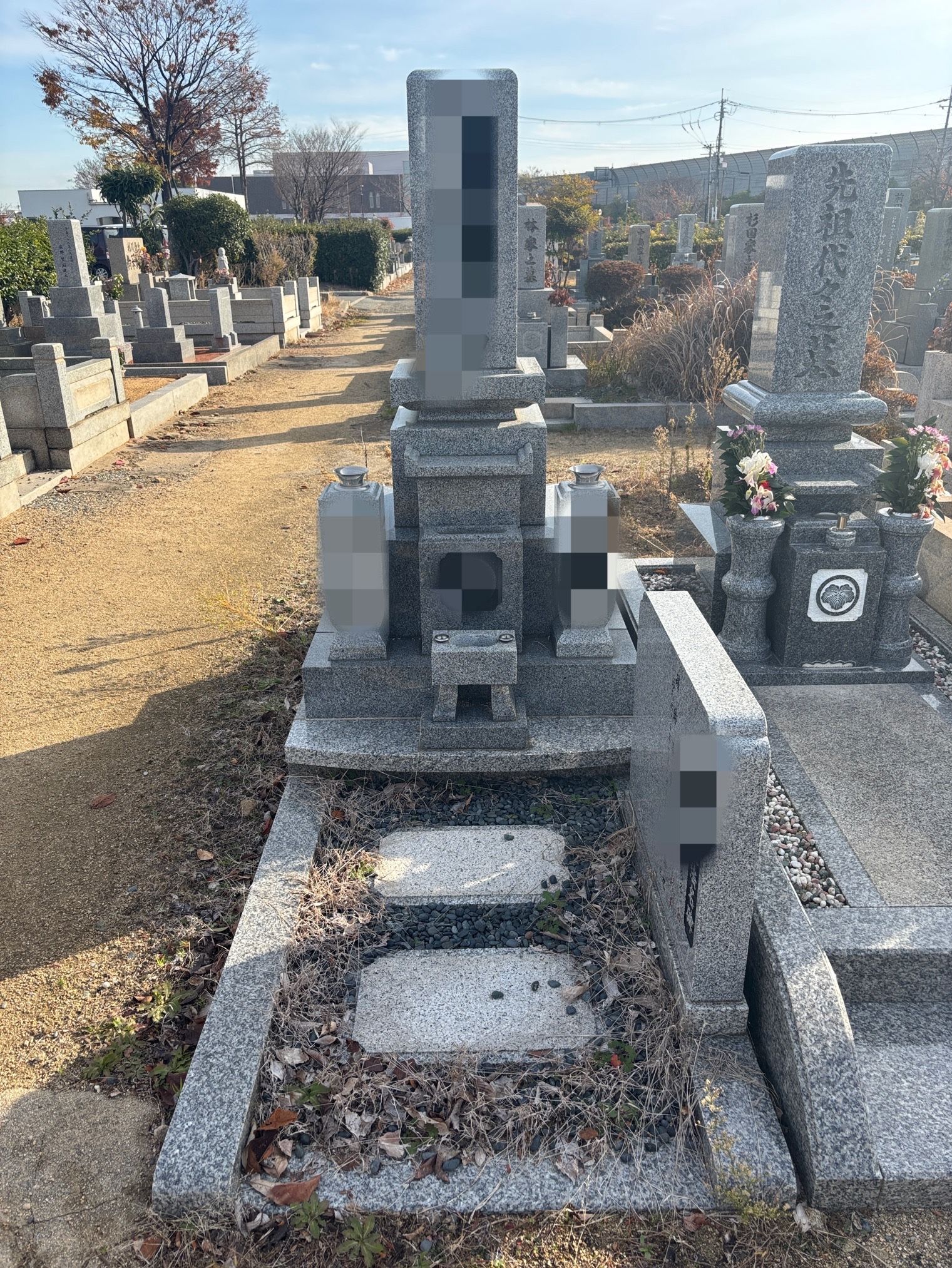 管理人の方が、定期的に草むしりをしてくれている様で、ある程度はきれいな状態でしてが、スッキリした状態で年を越してもらうために、墓石のお掃除と雑草も全て除去しました。