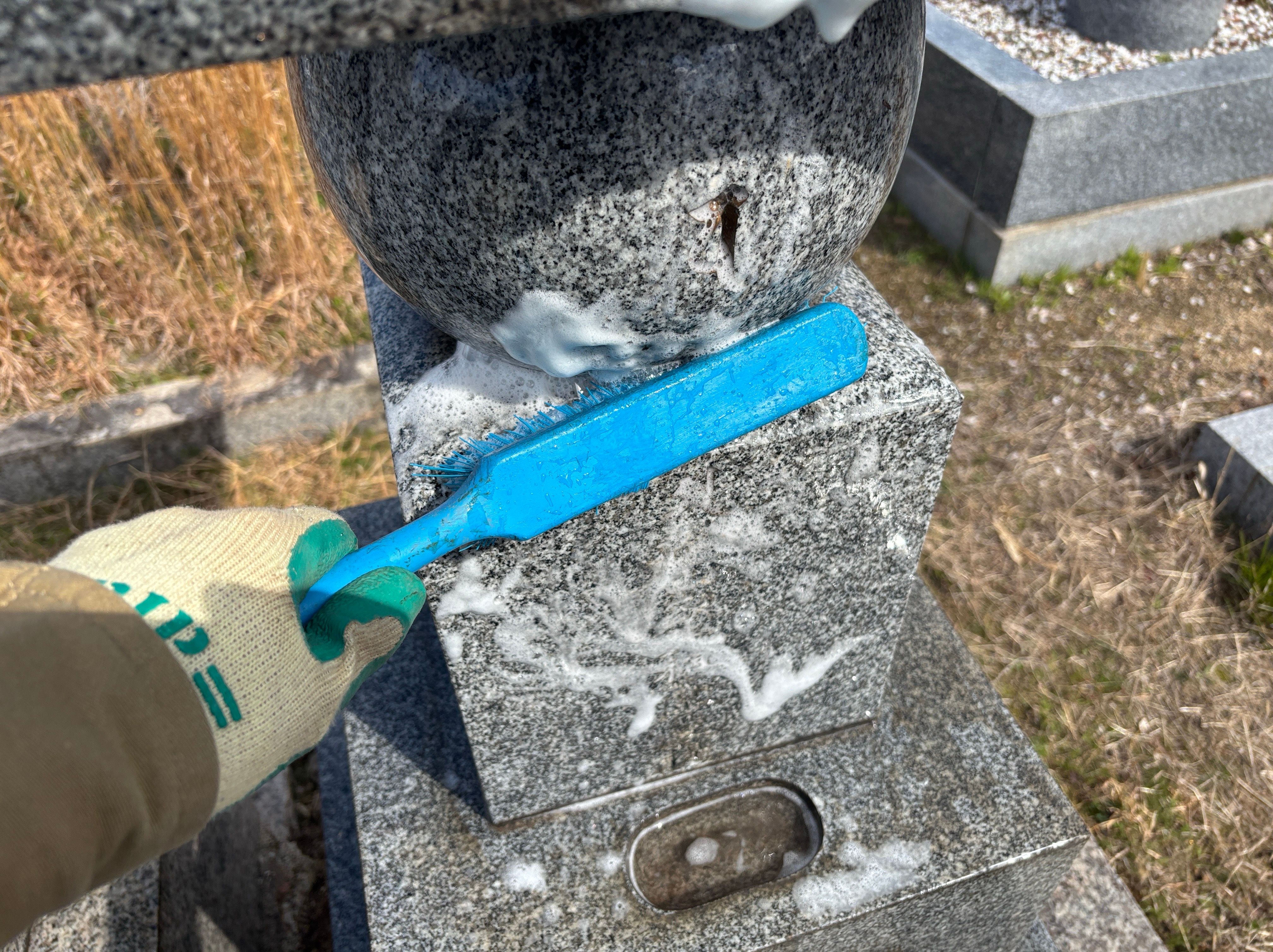 その後に墓石のお掃除も行い、除草剤を散布してお掃除完了です!