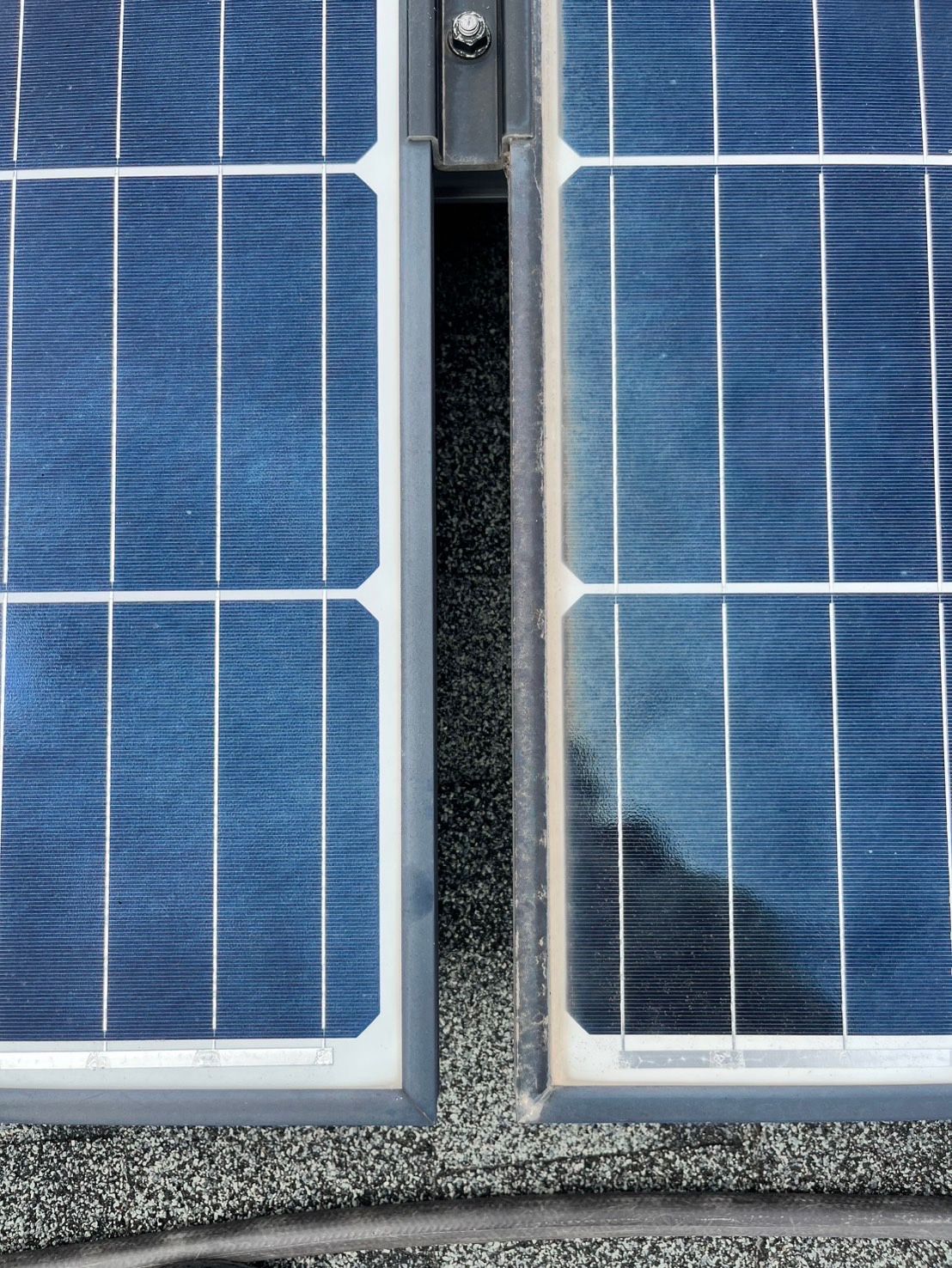 本日は太陽光パネルの洗浄を行いました。右側は作業前。左側が作業後になります!同時に割れや配線も点検して、お客様に満足いただけました。
