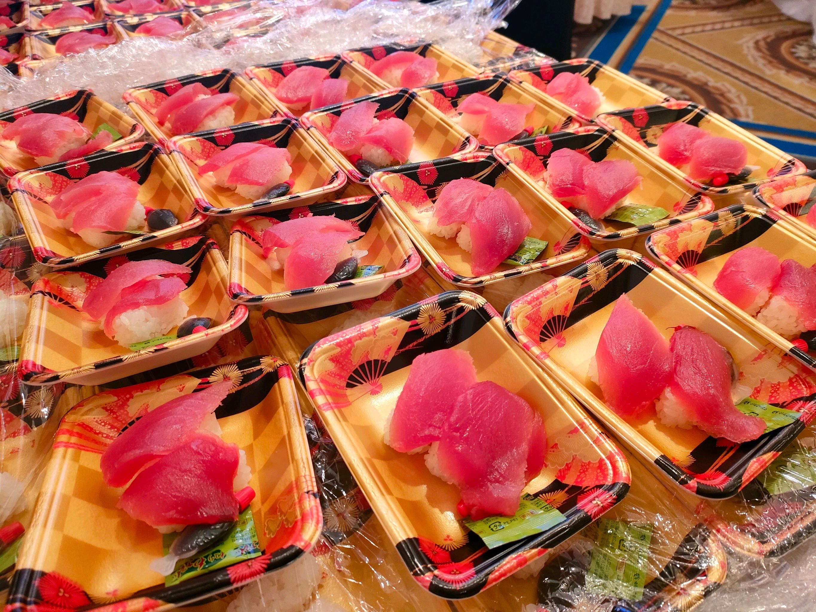 解体されたマグロは、その場でお寿司に。