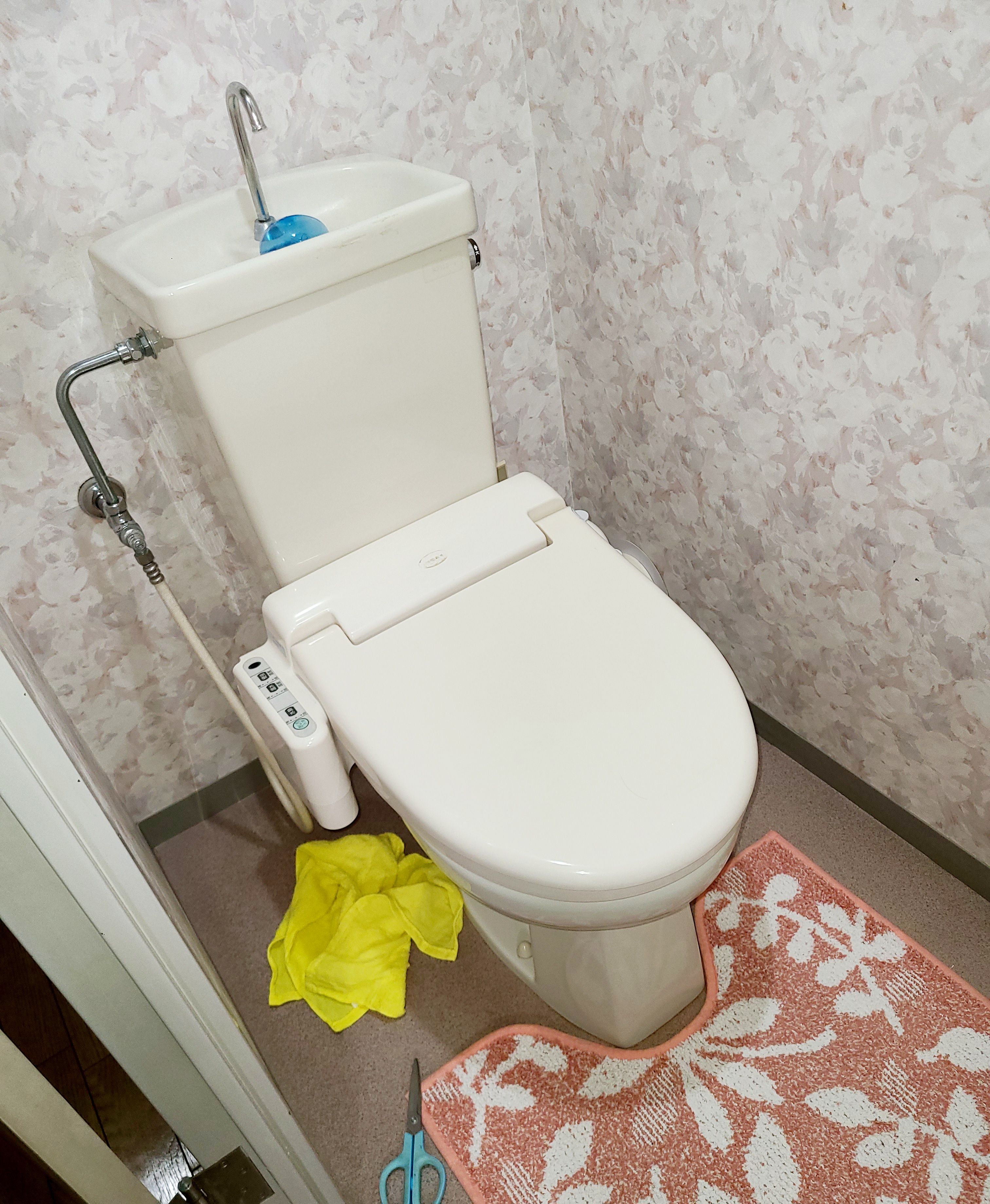 マンションのトイレ 温水便座交換をしました。 少し昔の温水便座で給水管が規格が違っていて取り付けに時間がかかりましたが