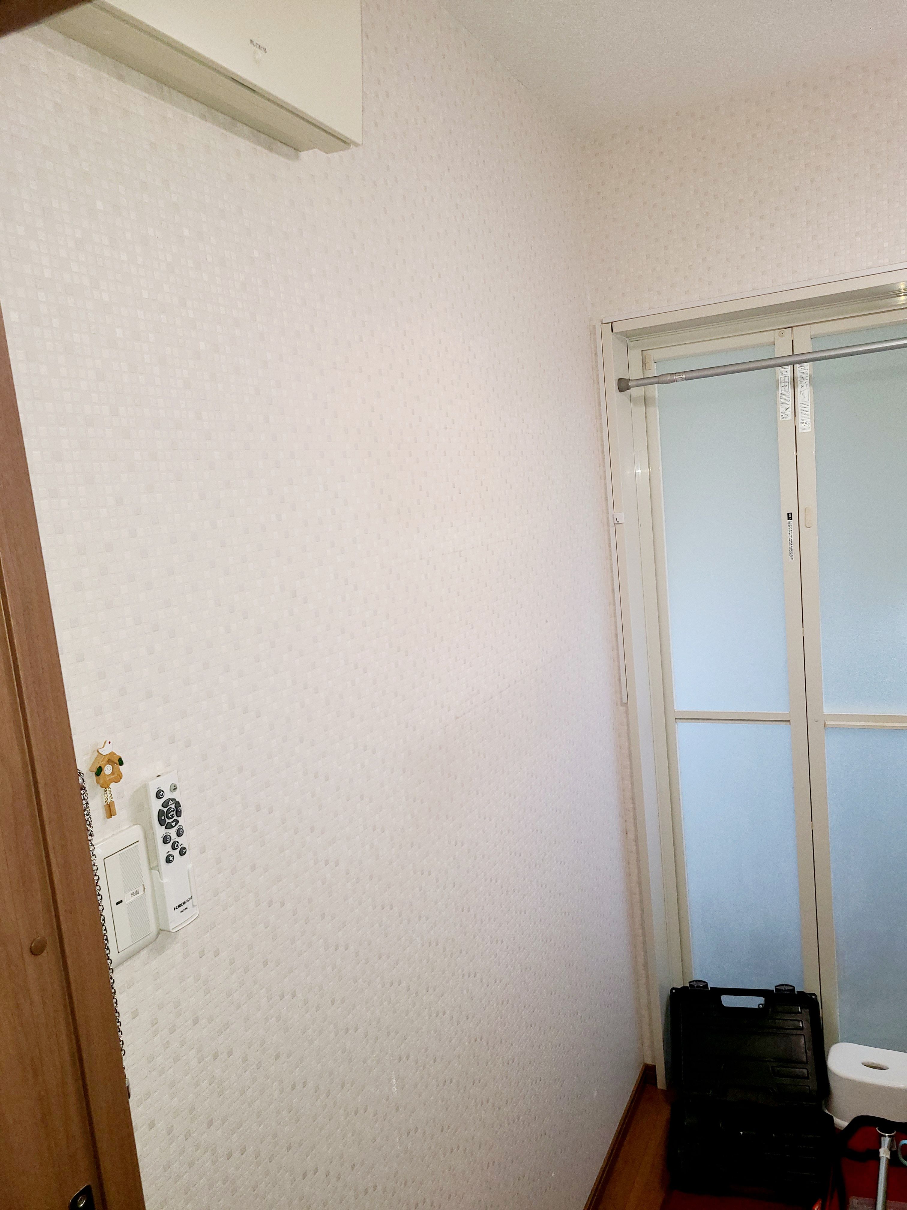 洗面所に可動棚を設置したいと相談がありました。設置予定の壁が石膏ボードでしたのでボードアンカーを使用して取り付けました