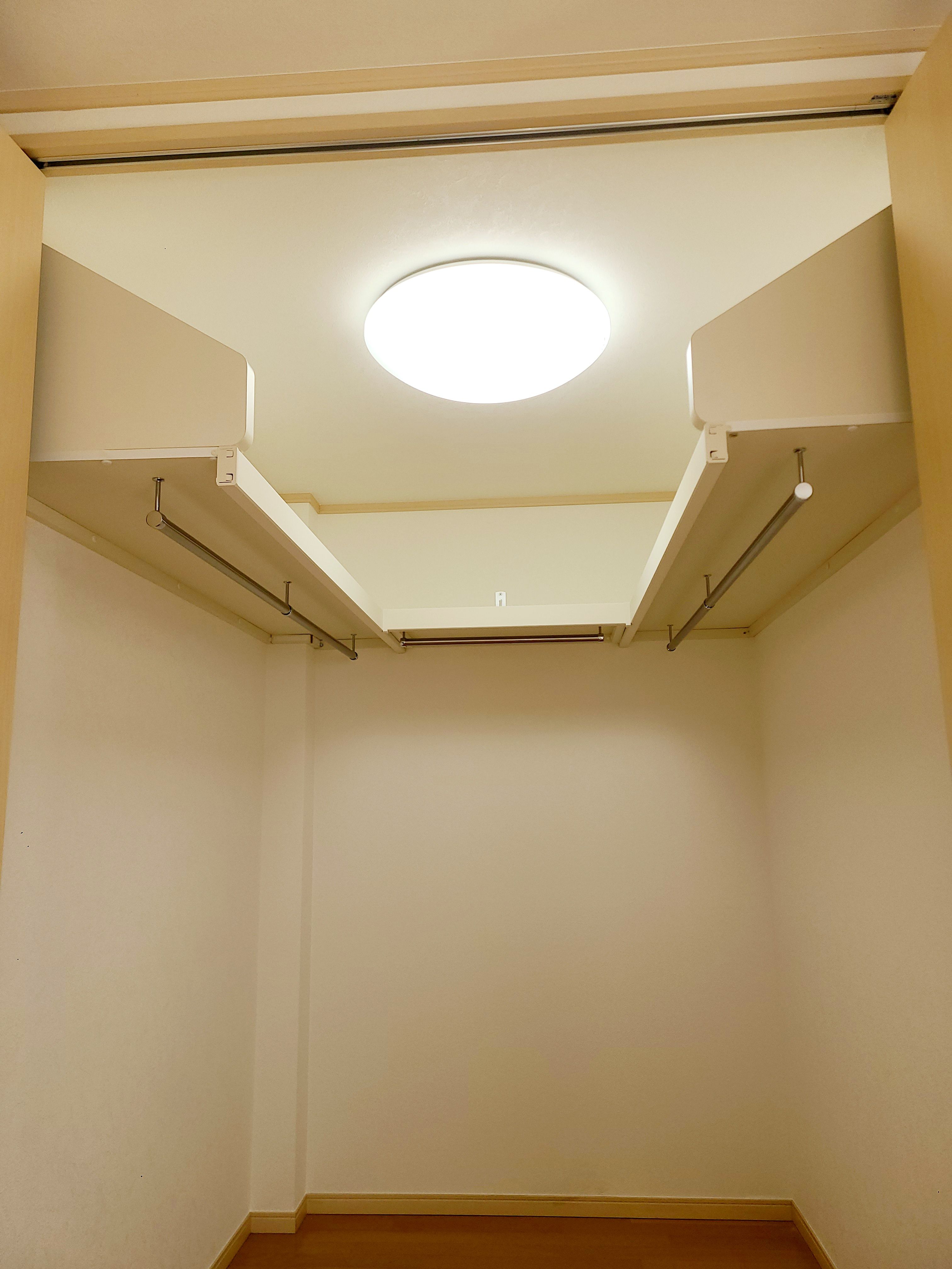 ウォークインクローゼットに枕棚を設置しました。鉄骨造でどこに下地があるかを調査後設置可能でしたので取り付け出来ました。