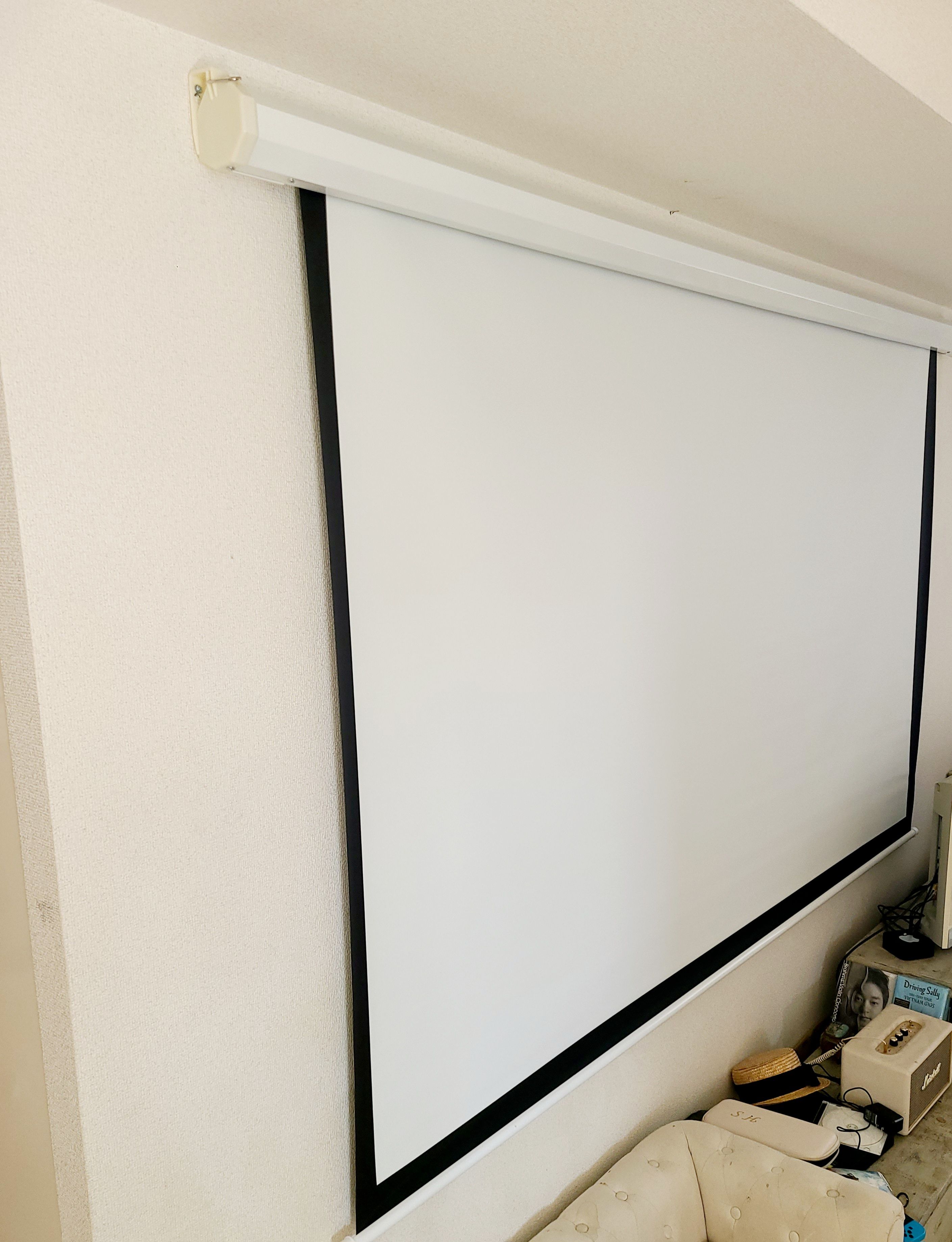 電動スクリーンだったのでコンセントの位置を確認しながら取り付け場所を決定して取り付けました。