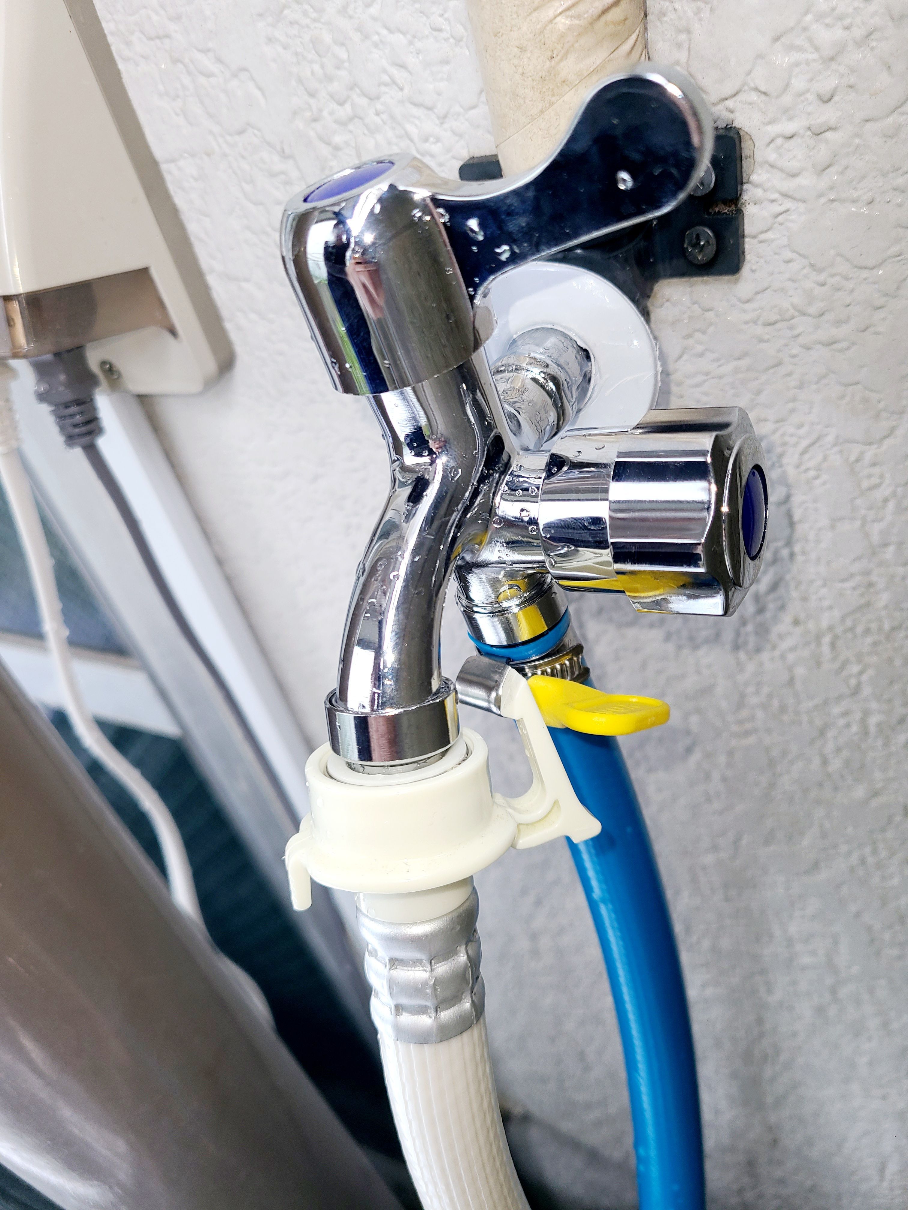庭に洗濯機用水洗があったのですが洗濯機に常時繋がっていて植物に水やりしたいが出来なくてとの相談で蛇口を交換しました