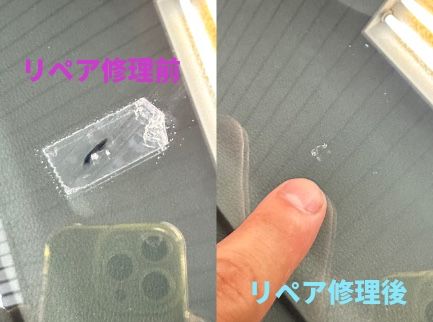 テープなどで保護していただくことで、雨の水滴やダストがヒビの中に入るのを防いでくれるので、ヒビの先まで液が入り、キレイに修理をすることができます。