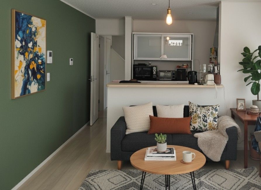 グリーンのアクセントを施しました。モダンで落ち着いた、カフェのような空間に一変です!