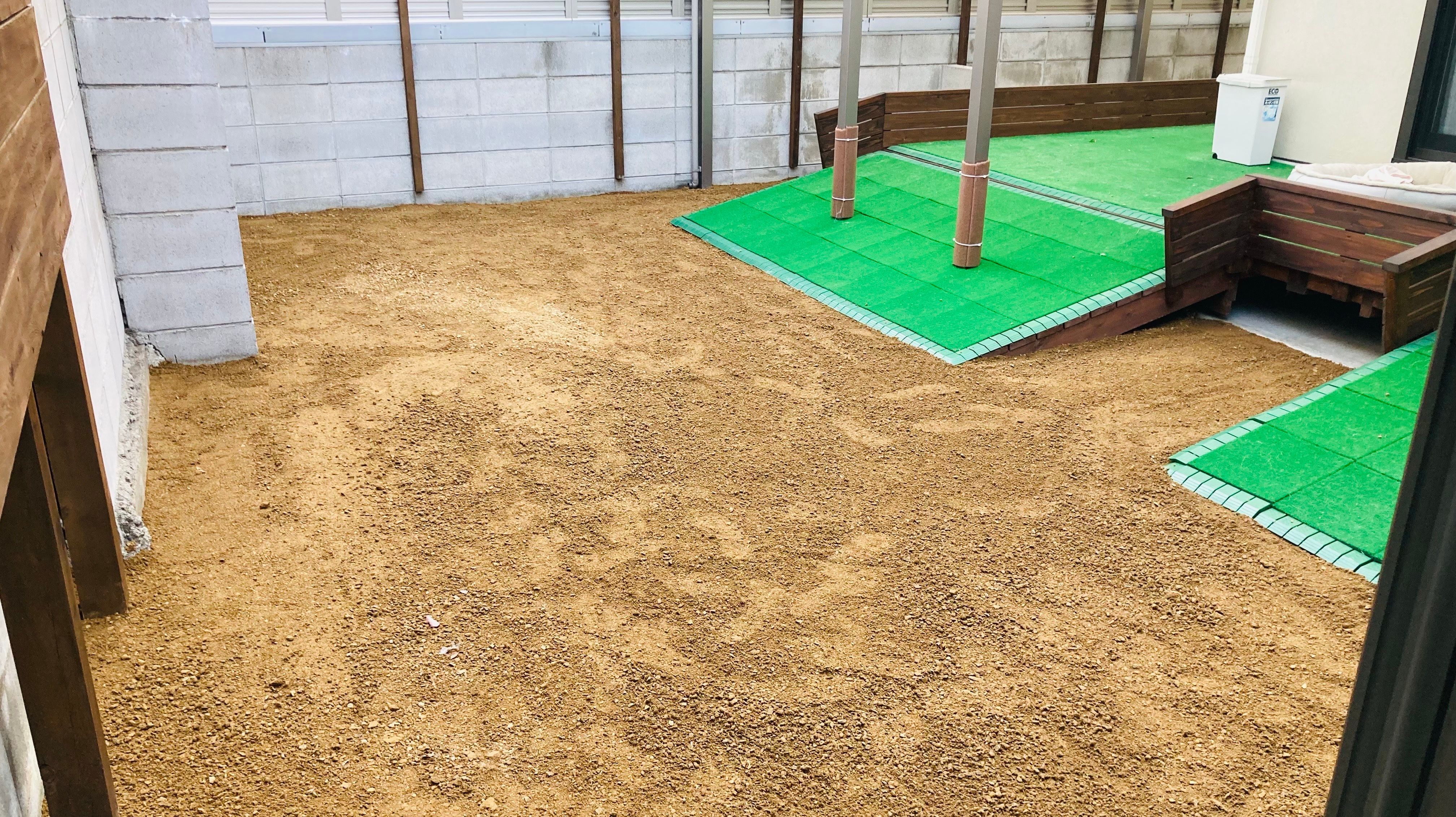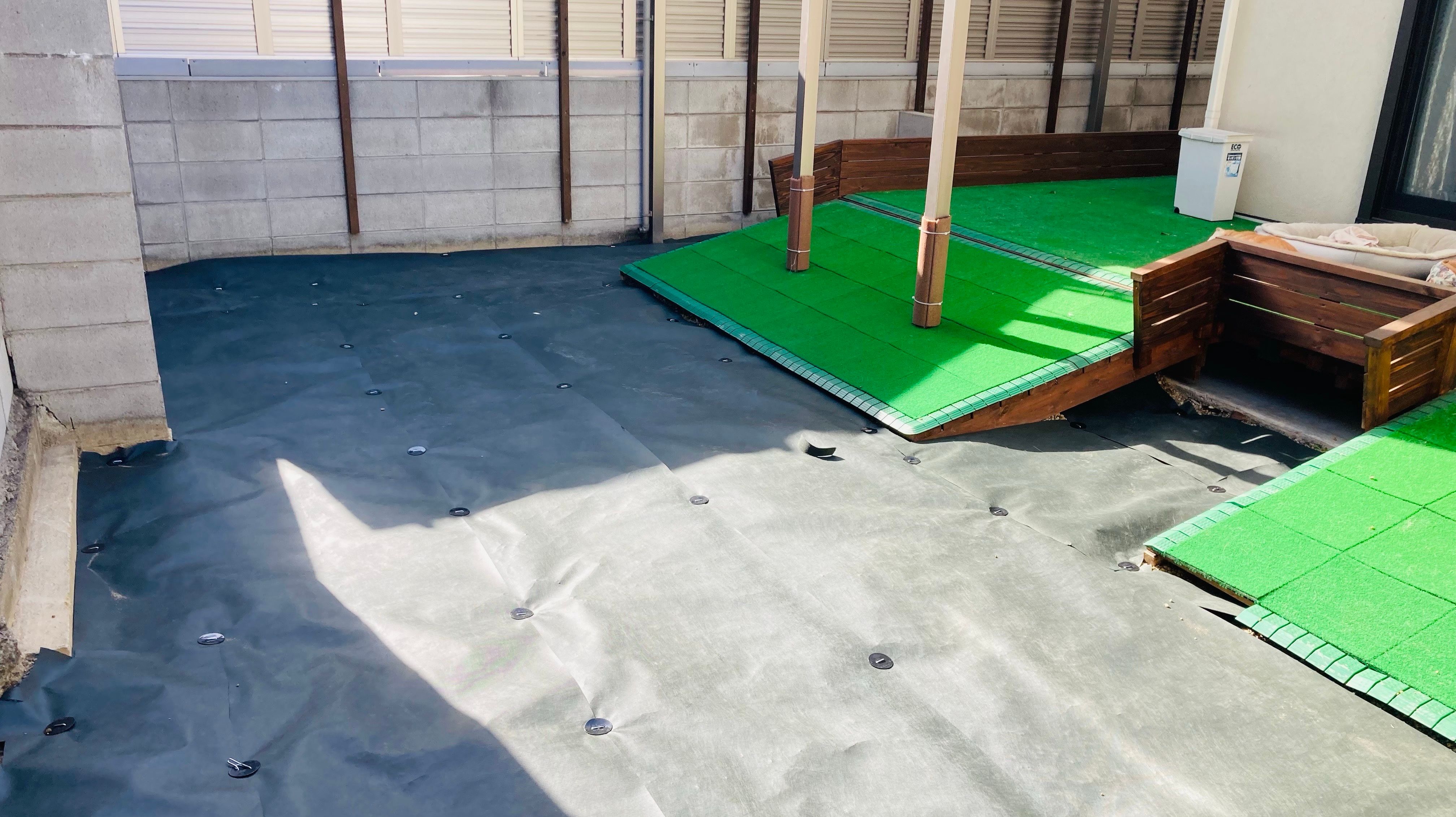 草が何度も生えてきて、手入れが大変ではないですか?そんな時は、防草シートがおすすめです。すぎもと屋では、その施工ができますので、お気軽にお声掛けください。今回は家周りのジャリを取り除き、防草シートをはり、その上からまさ土を敷いて完成しました。