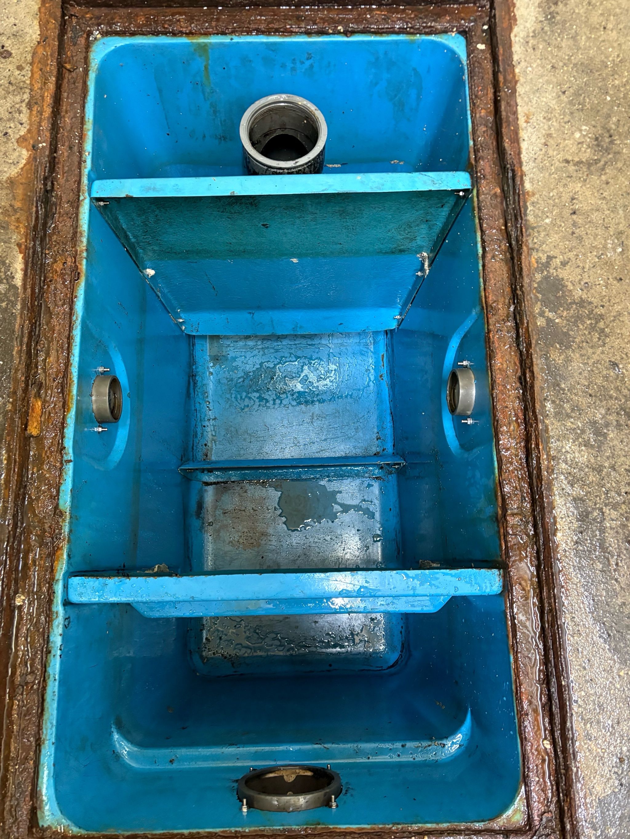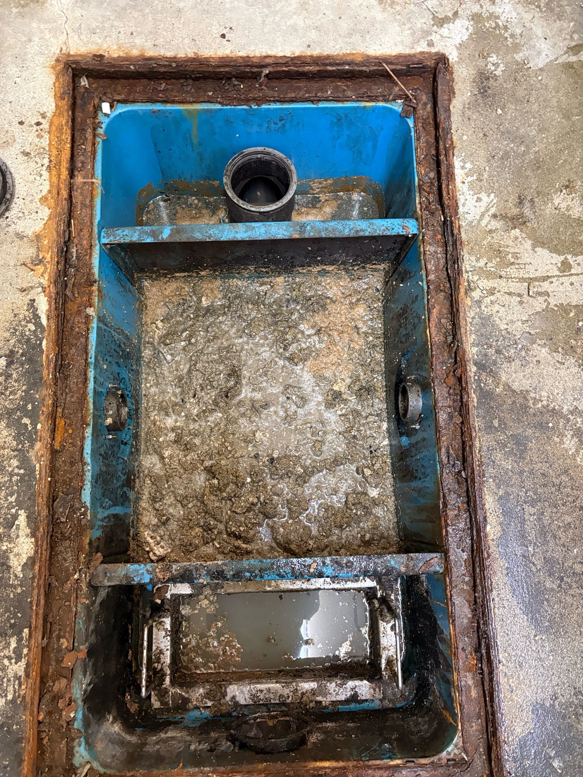 開店前なので、前のお店のグリストラップ汚れ、油や砂が酷かったです。