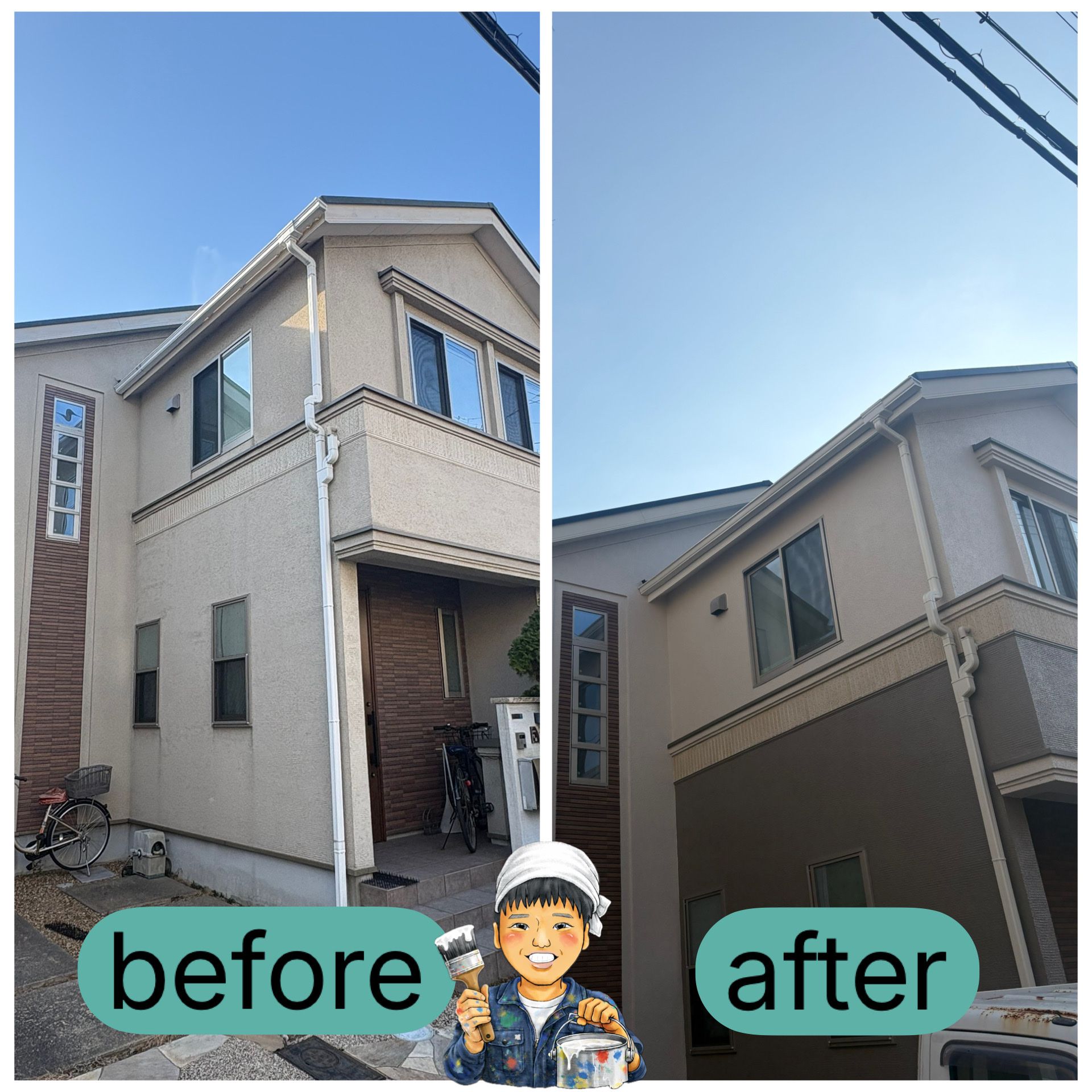 塗替え後は外観も明るくなり、汚れも付きにくくなりました。