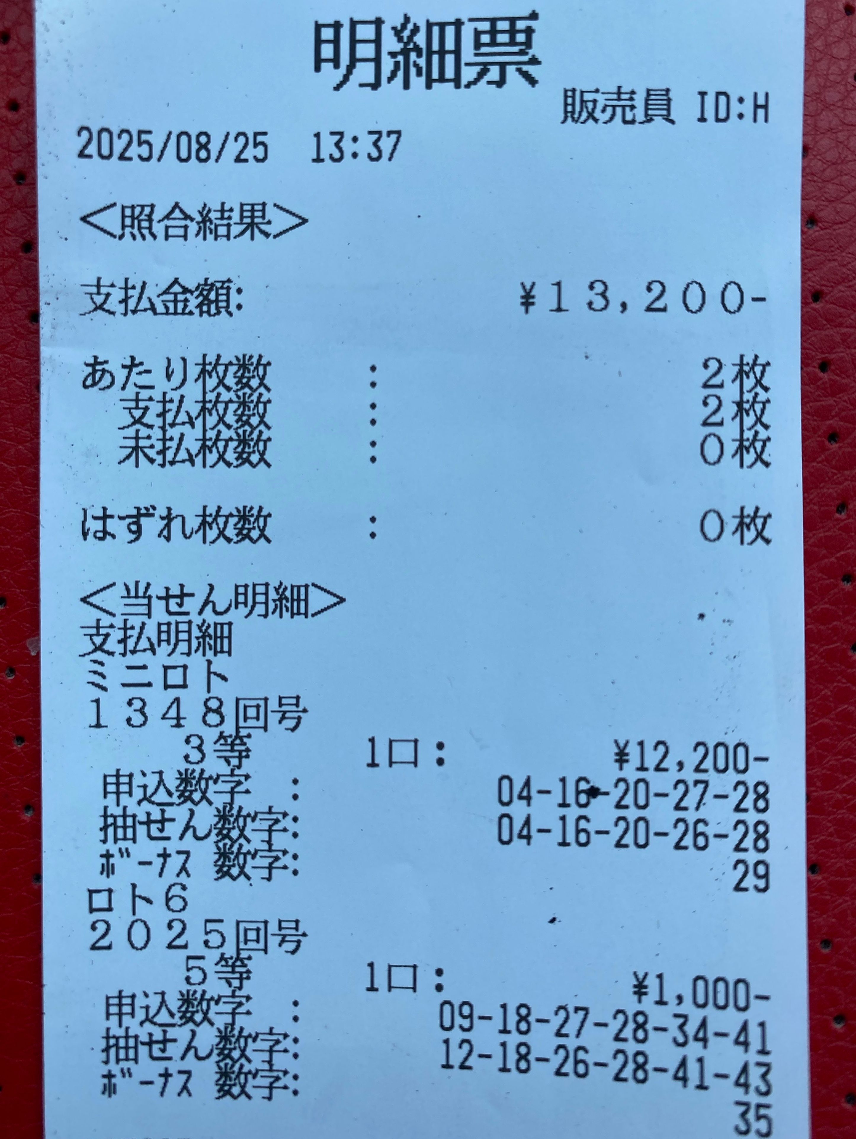 13,200円の当たりを頂きました。