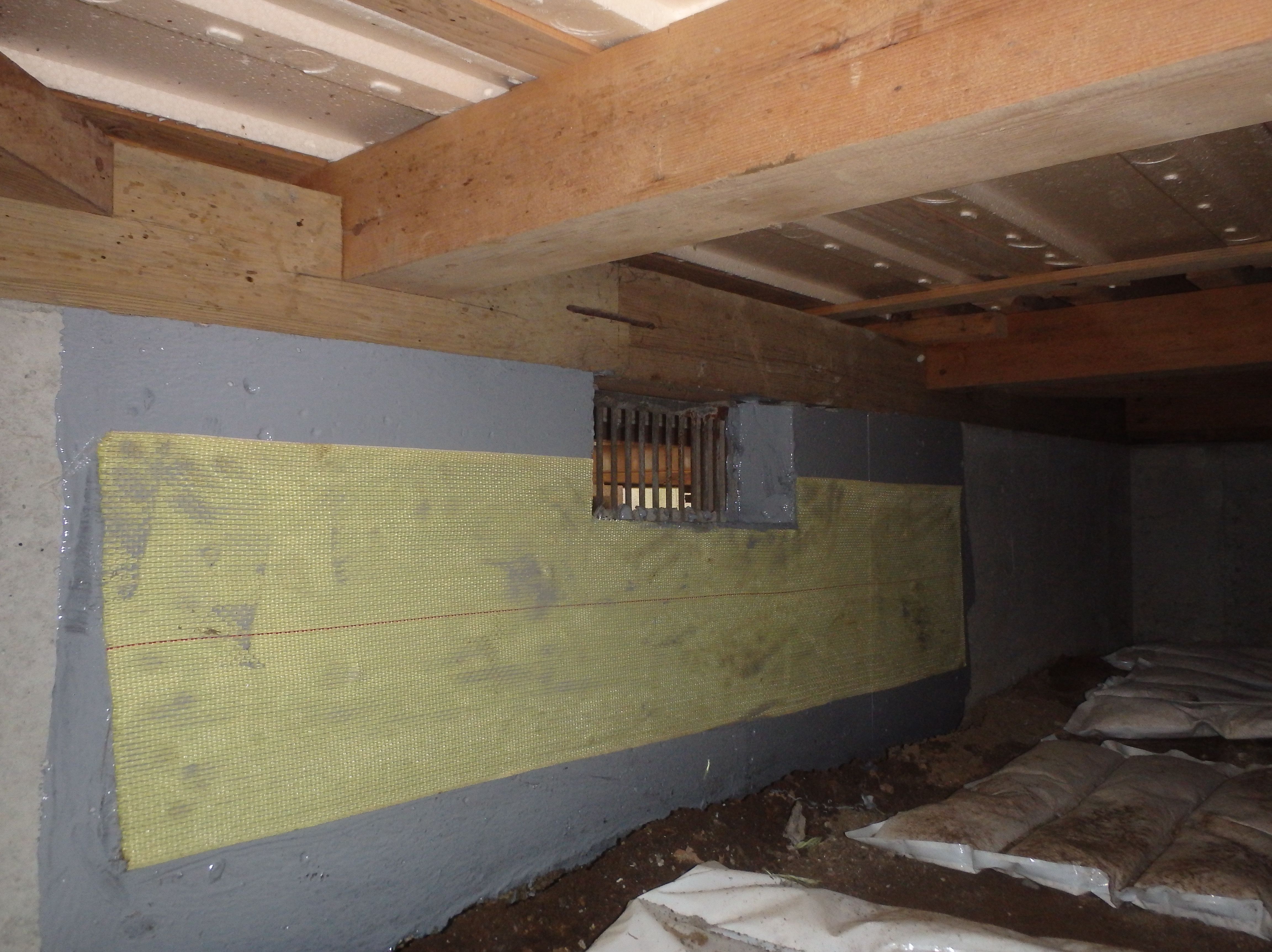 基礎のひび割れ補強工事の様子をご紹介します。