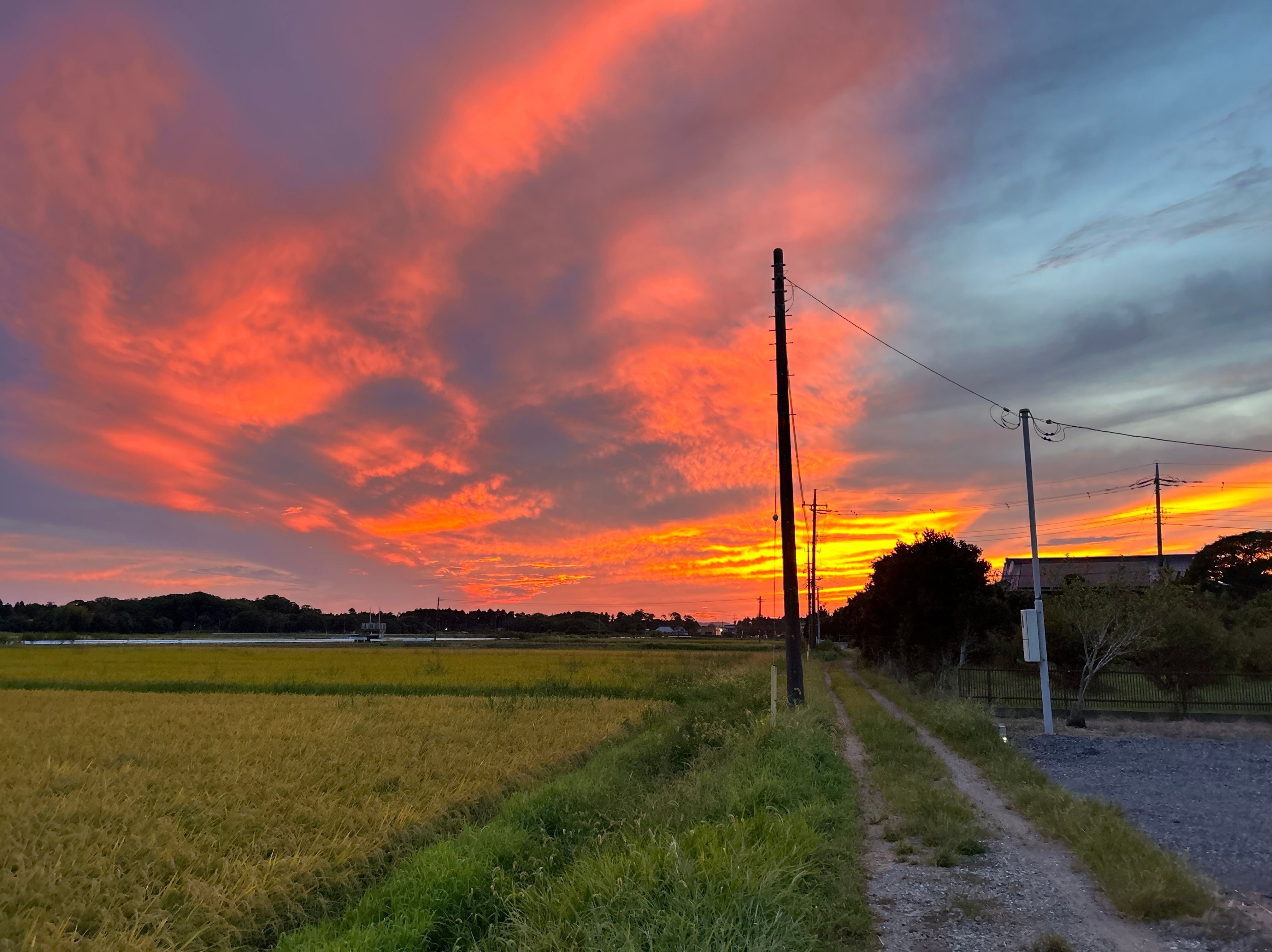 ヘトヘトで帰ってきたときに見る真っ赤な夕空は格別ですね。