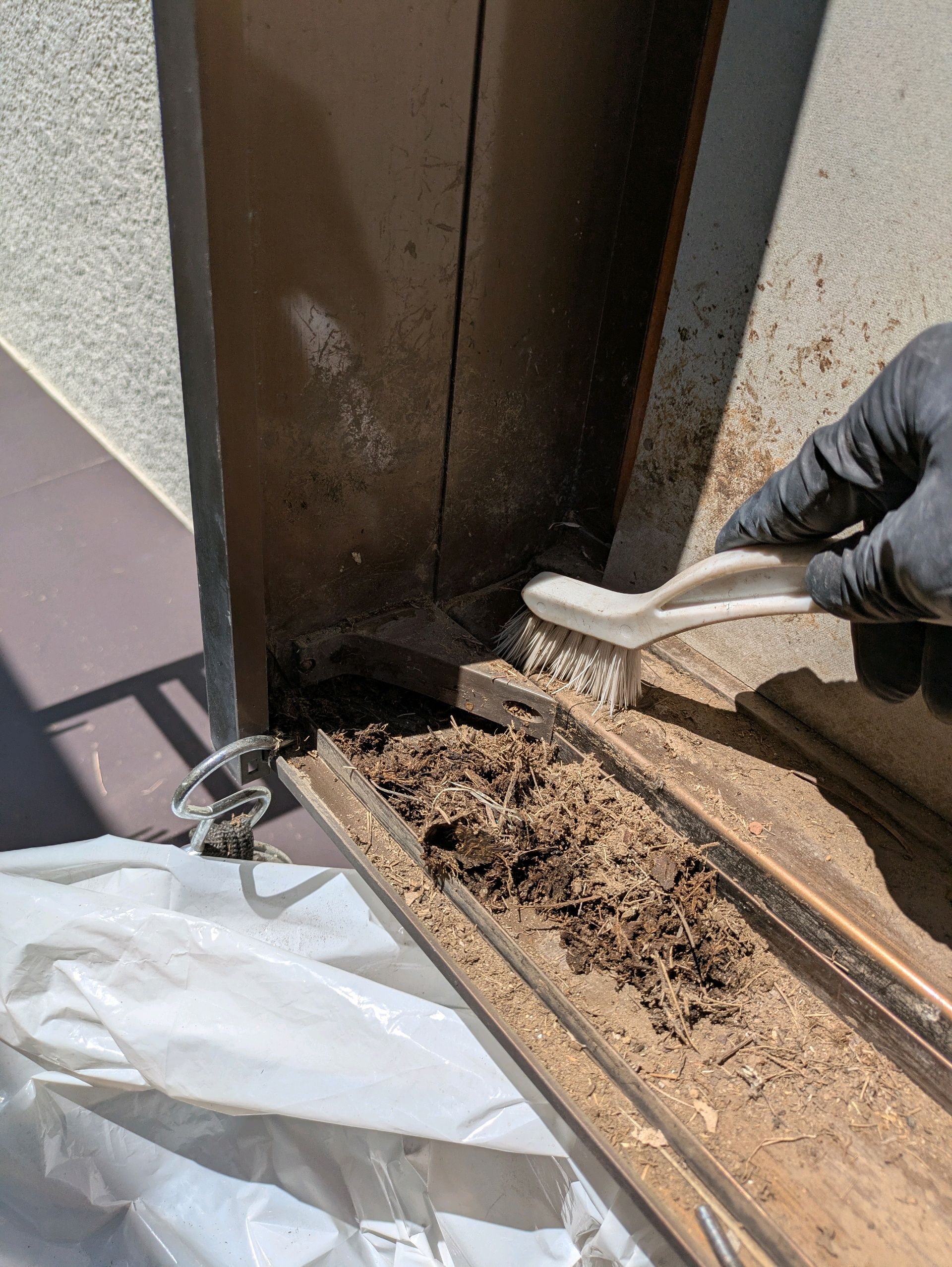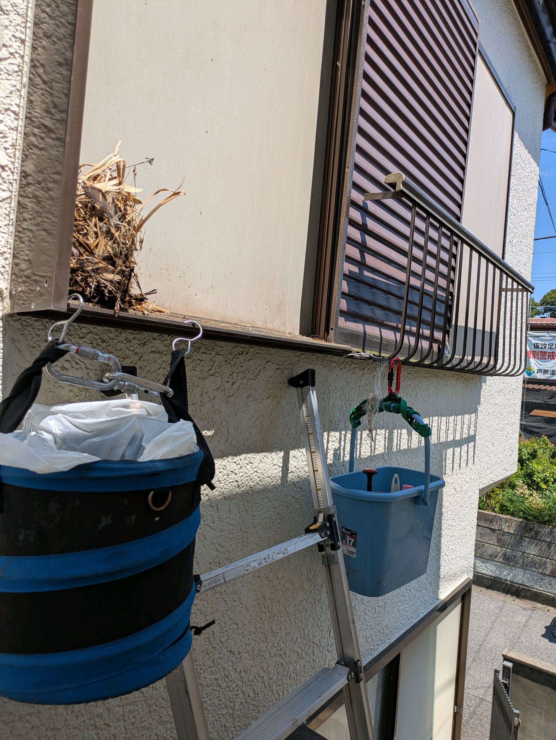 今日は流山市のY様からのご依頼でムクドリの巣の撤去(ヒナは巣立ちしてます)と清掃をしました。
