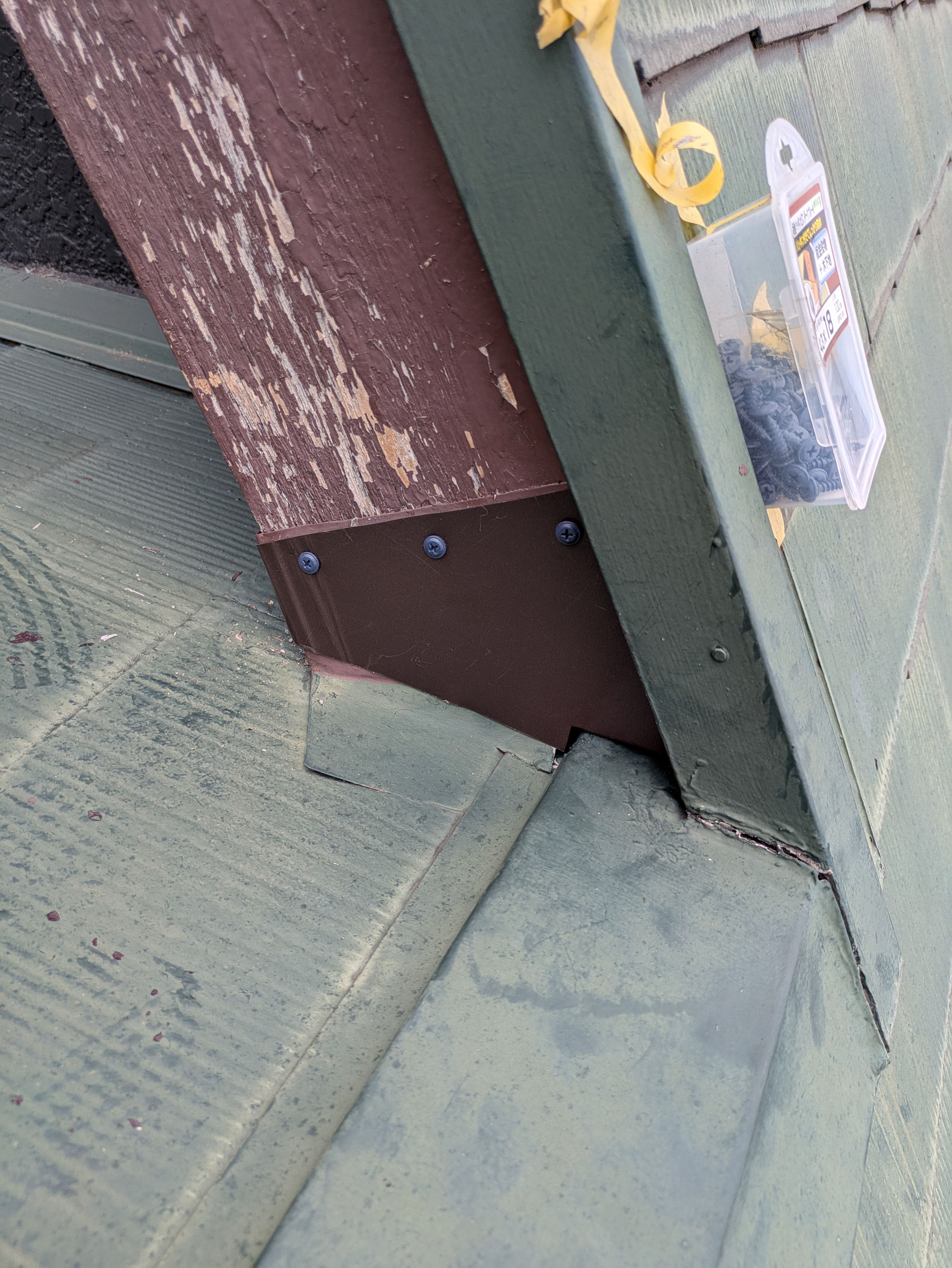 2階屋根のちょっとした隙間を板金で塞ぎました。