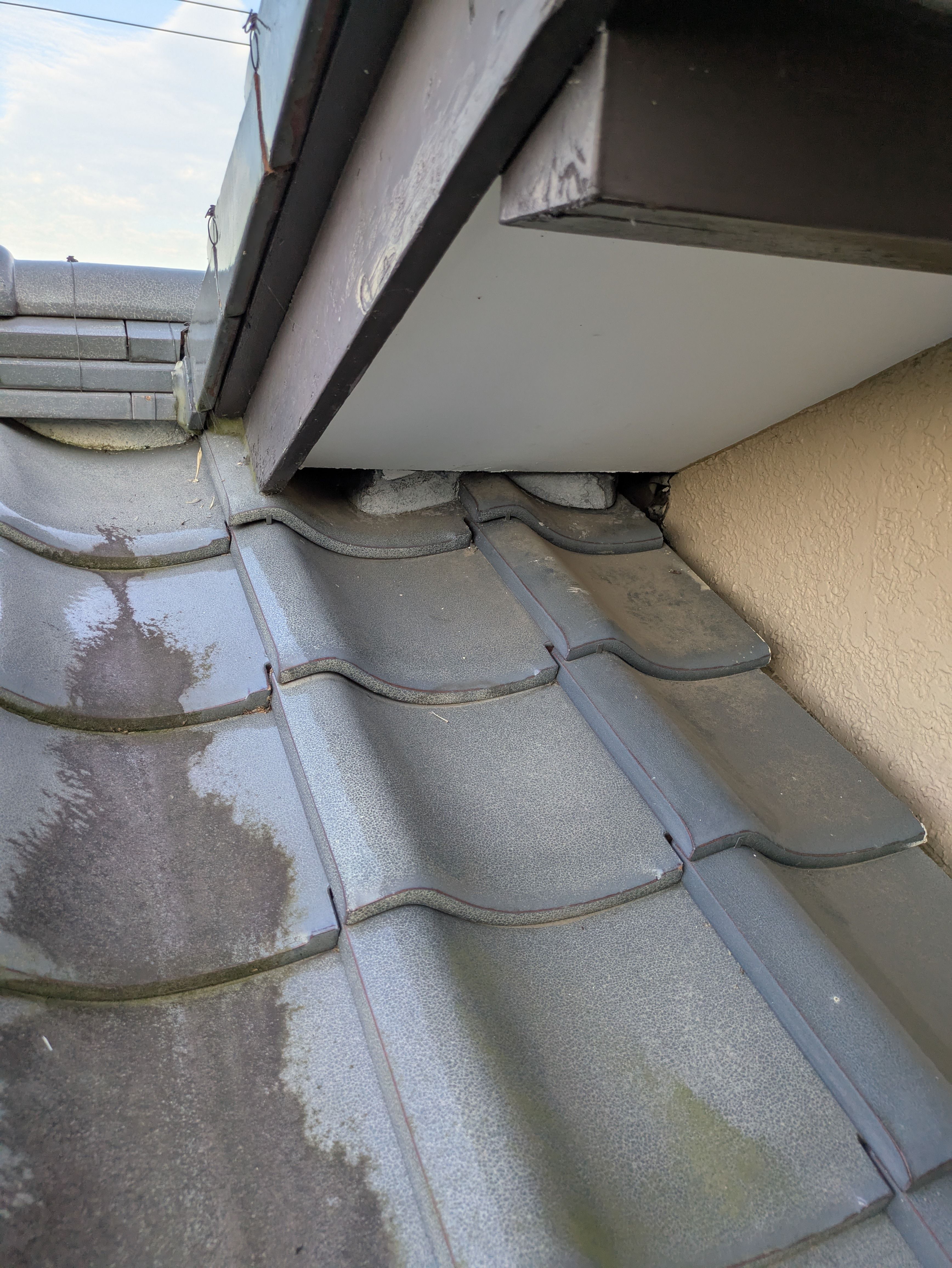 写真では漆喰が割れているのが確認できると思いますが、そこが侵入口と思われます。