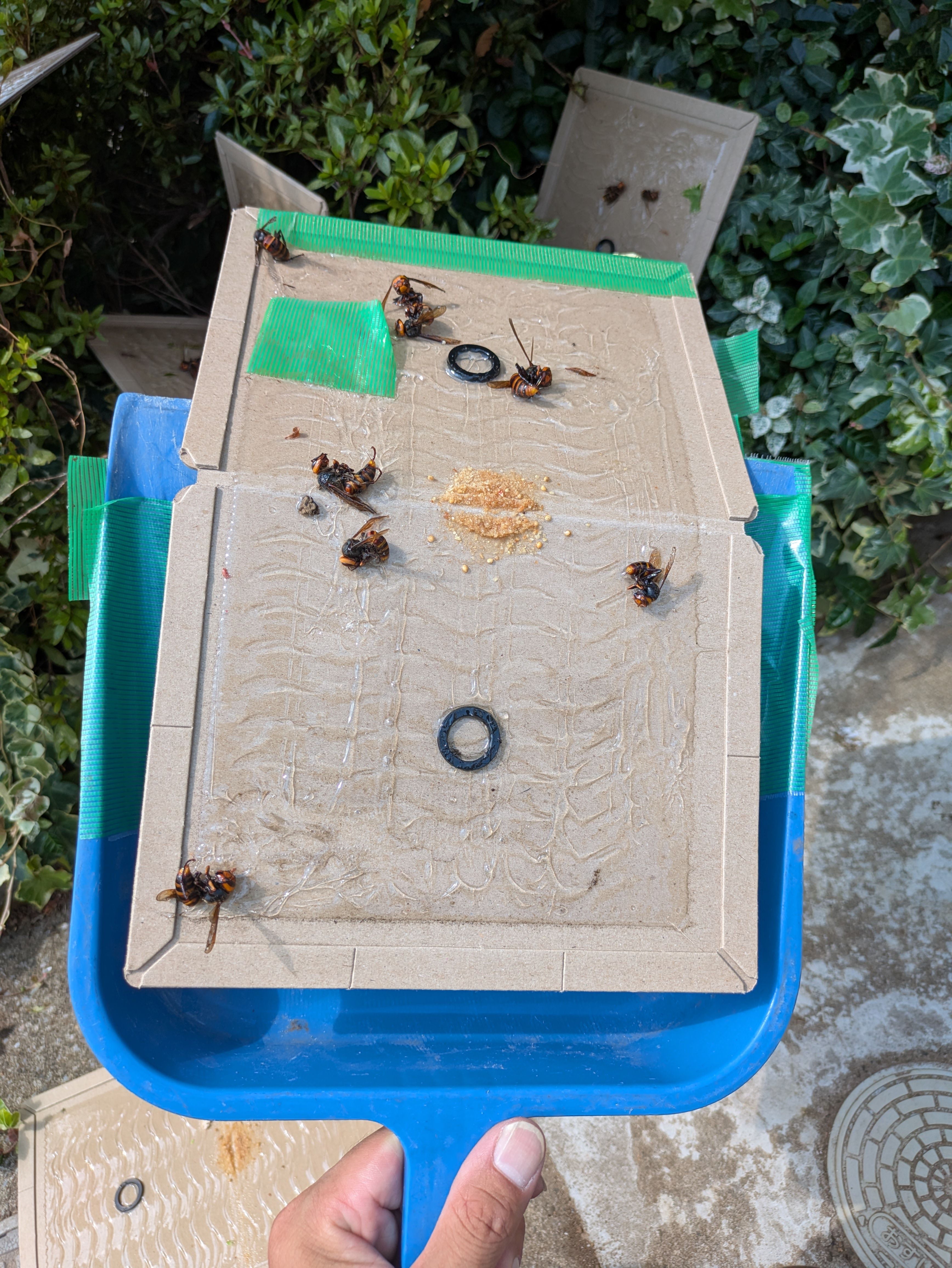 隙間から散ってしまったハチもいましたが、40分ほど戻りバチを捕まえて終了です。