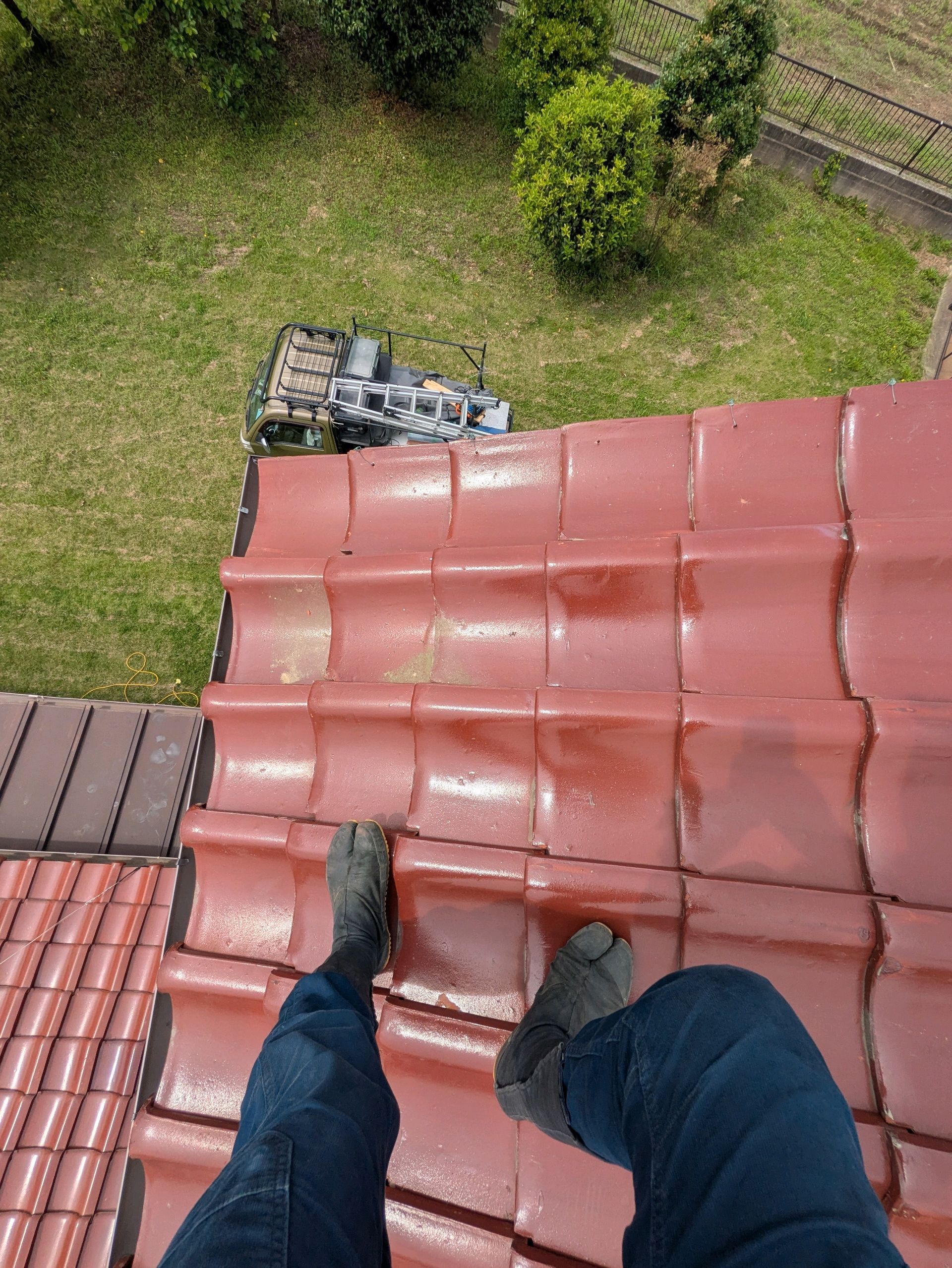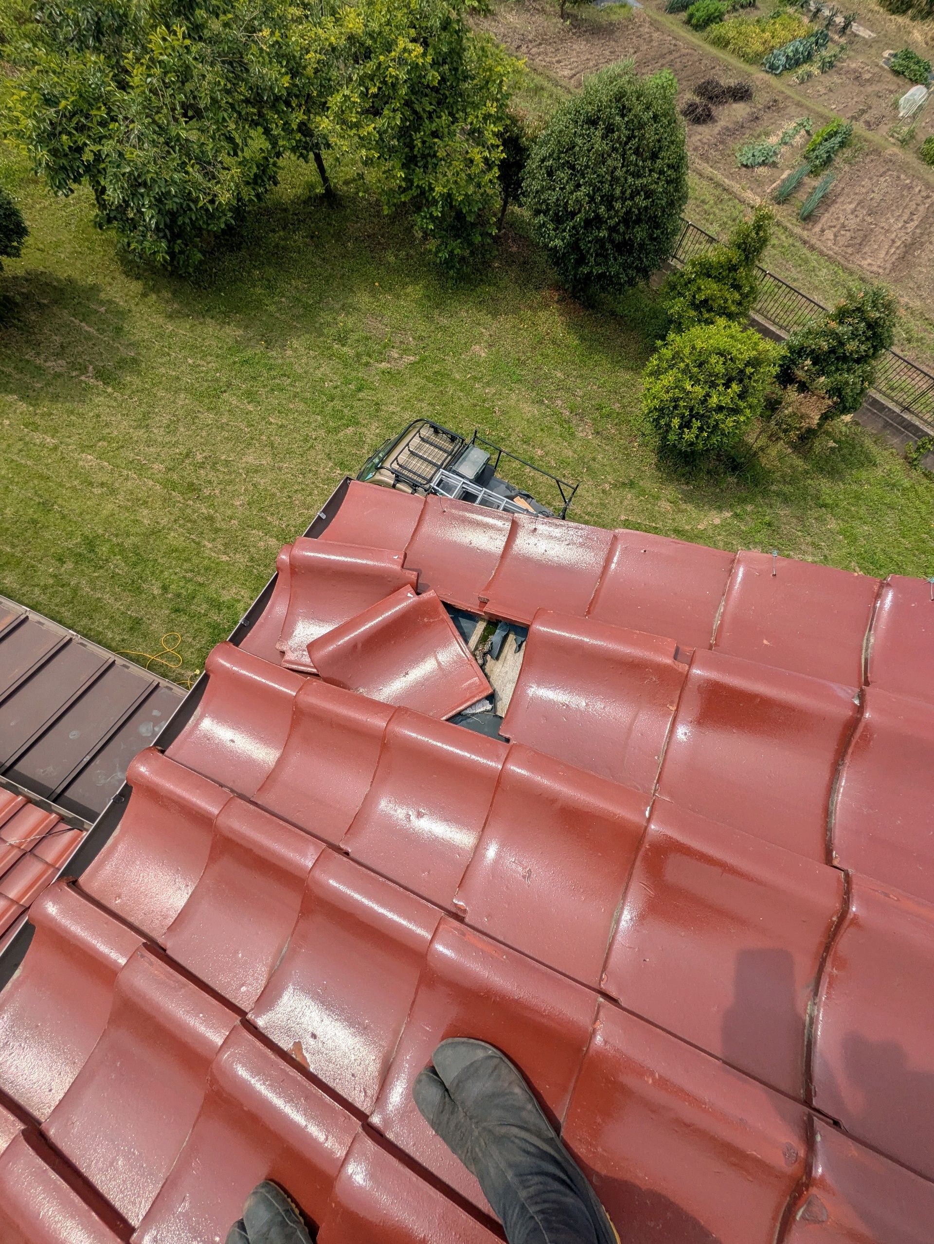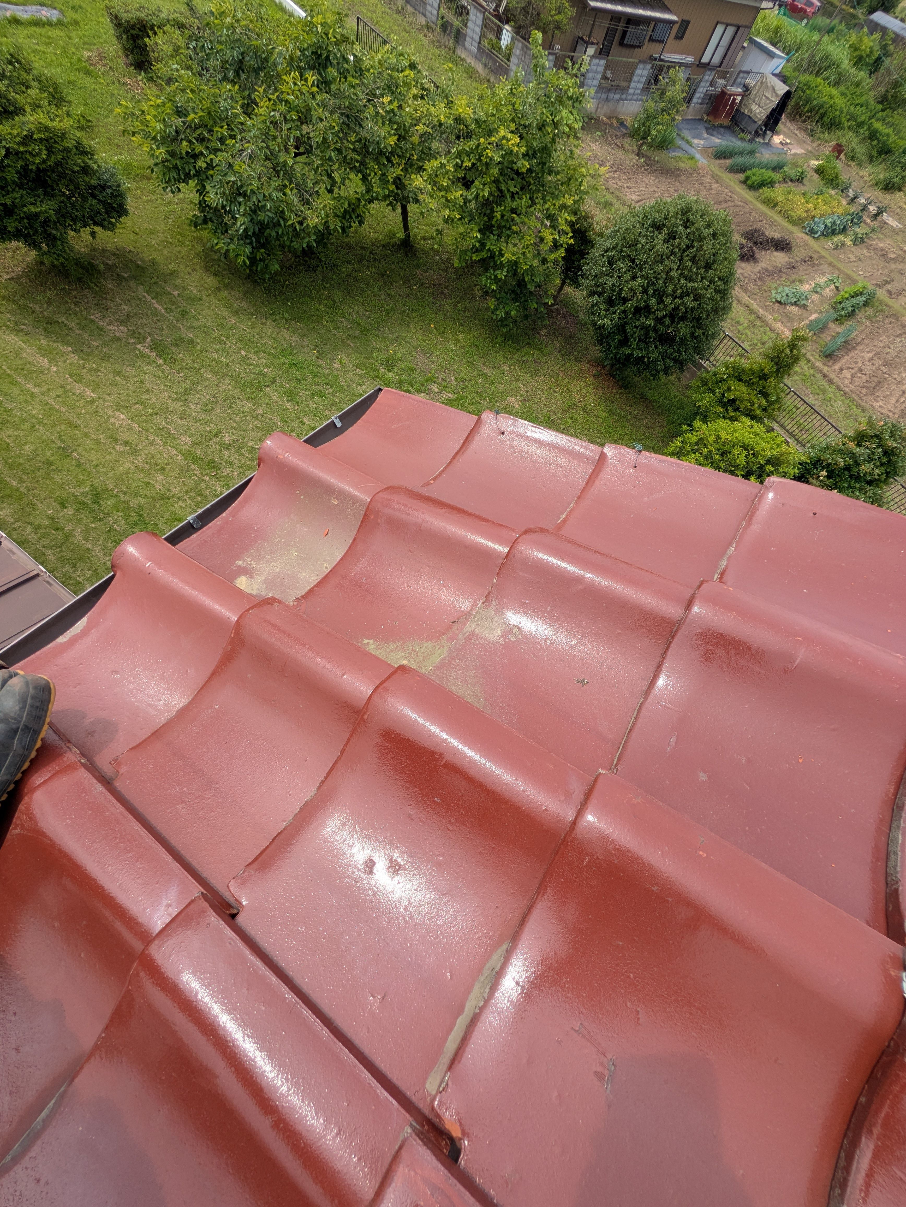 作業中に上を見ると屋根瓦が剥がれていましたので、ついでに直しました。