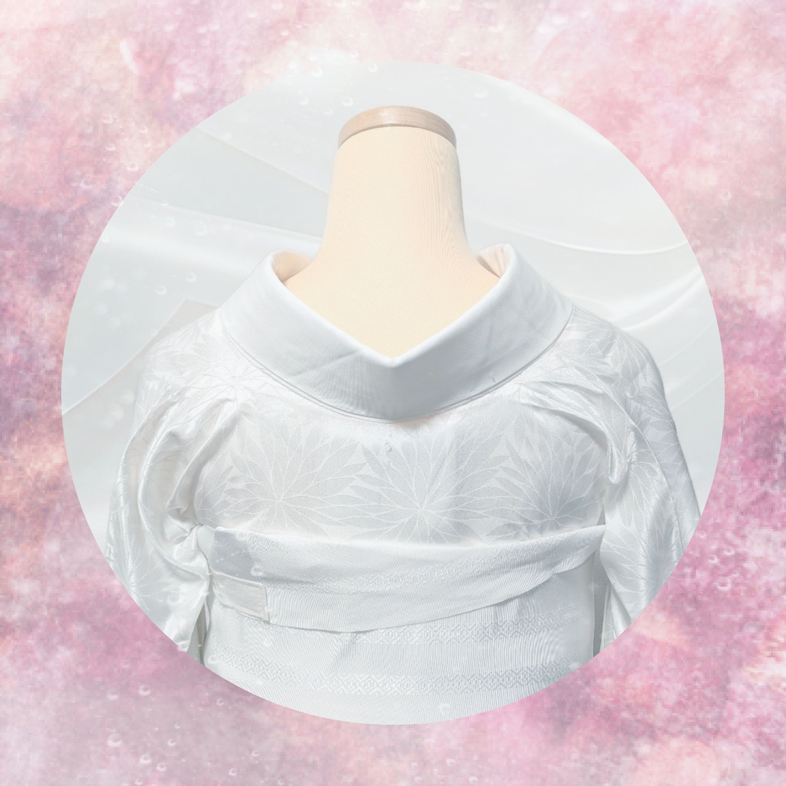 花嫁衣装の代表格白無垢大切な後ろ姿を決める衿合わせ。花嫁様の衿の理想はハート型🩷ご存知でしたか☺️実現するために着物の下にお召し頂く長襦袢の衿合わせが大切になります。お写真のように丁寧にハート型の土台を設えます。