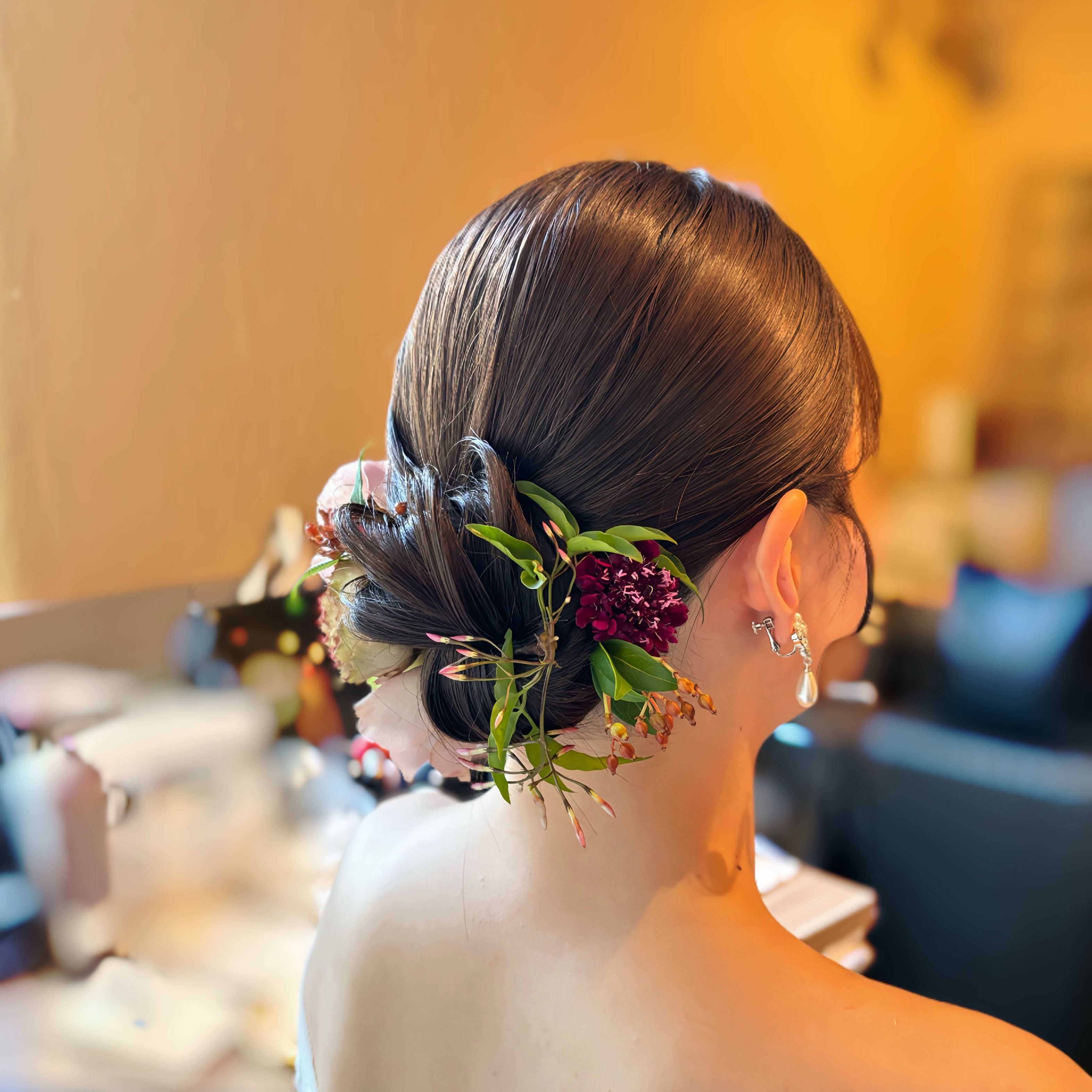 神戸・芦屋で出張ヘアメイク。結婚式お呼ばれに似合わせと崩れにくさを。美容歴10年、シーンに合わせた幅広いデザインで対応。