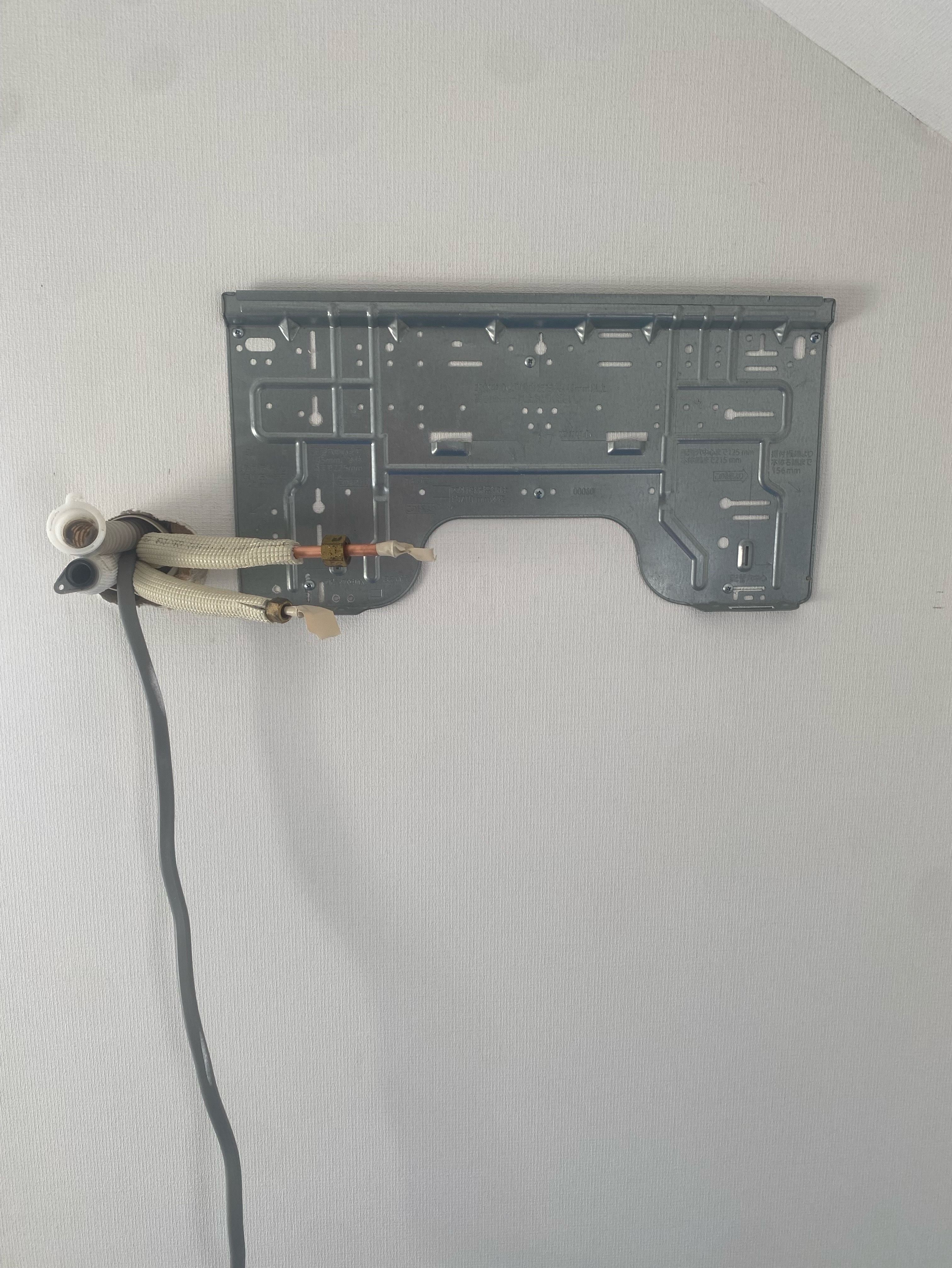 全てのパーツを洗浄し取り付け終わりましたら、壁掛けに戻し冷媒管を繋ぎ直します。