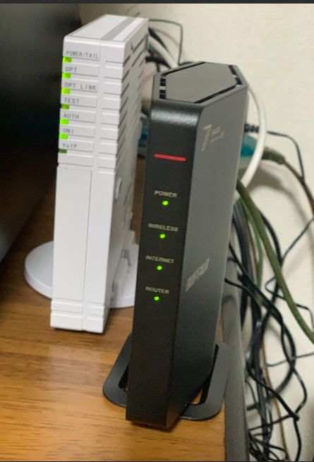 本日の作業は、メガエッグ社提供ONUからの信号をBufalo WIFI ルーターへの設定であった。
