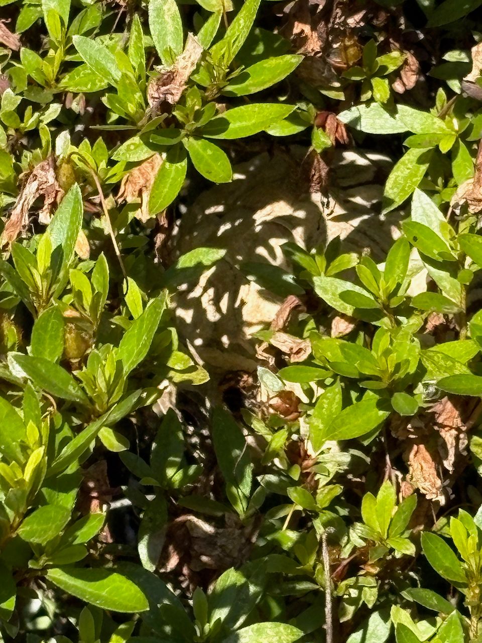 ツツジのような低木や生垣は、スズメバチにとって格好の営巣場所です。