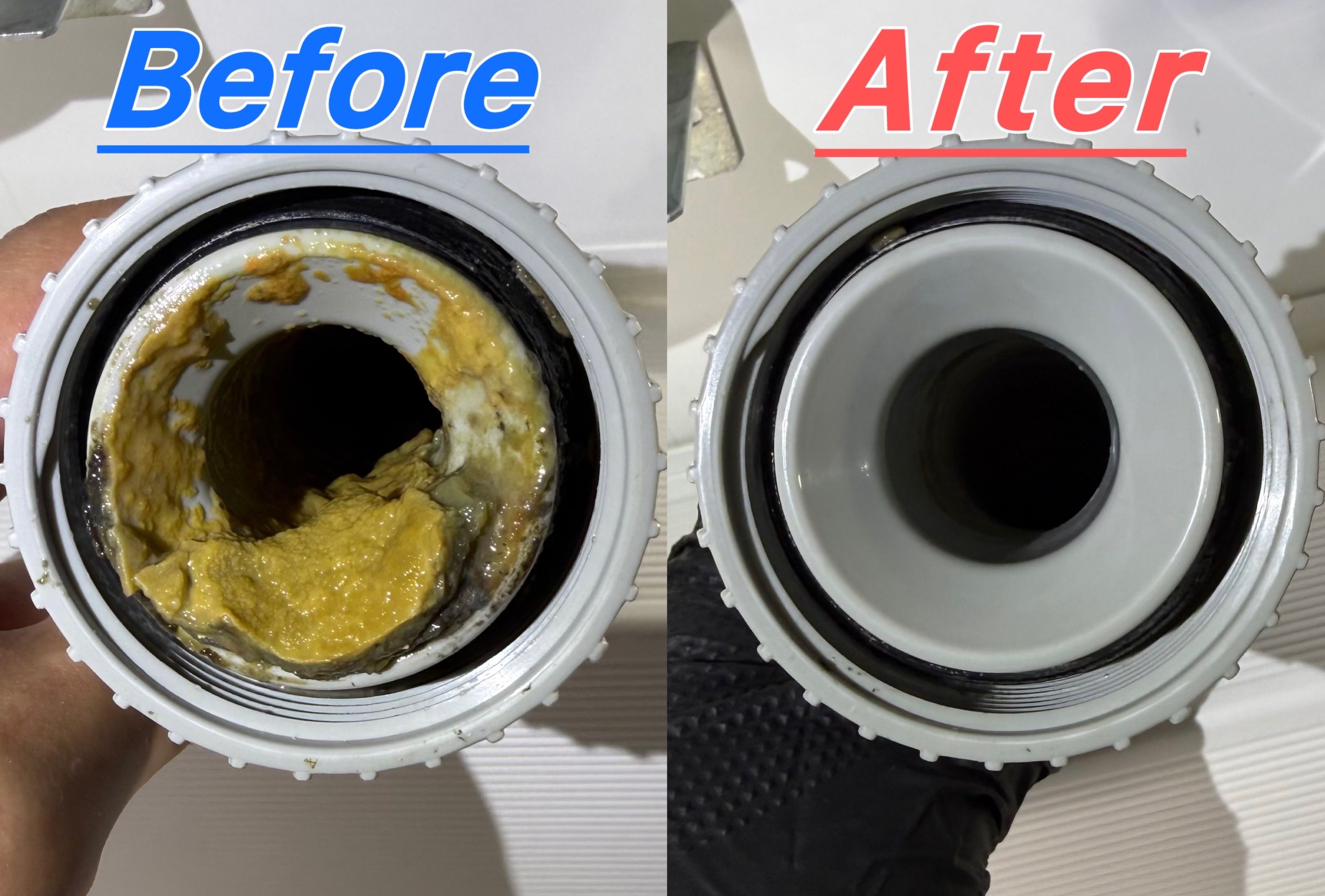 特に洗面台下のU字トラップなどは、思っている以上にカビやヘドロがこびりついており、