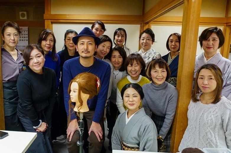 お客様の着姿をもっと素敵にするため。ヘアセットのプロフェッショナルを招いてヘアセット講習会を開催しました。様相にも合うシニヨンから和髪までをしっかりと学習致しました!