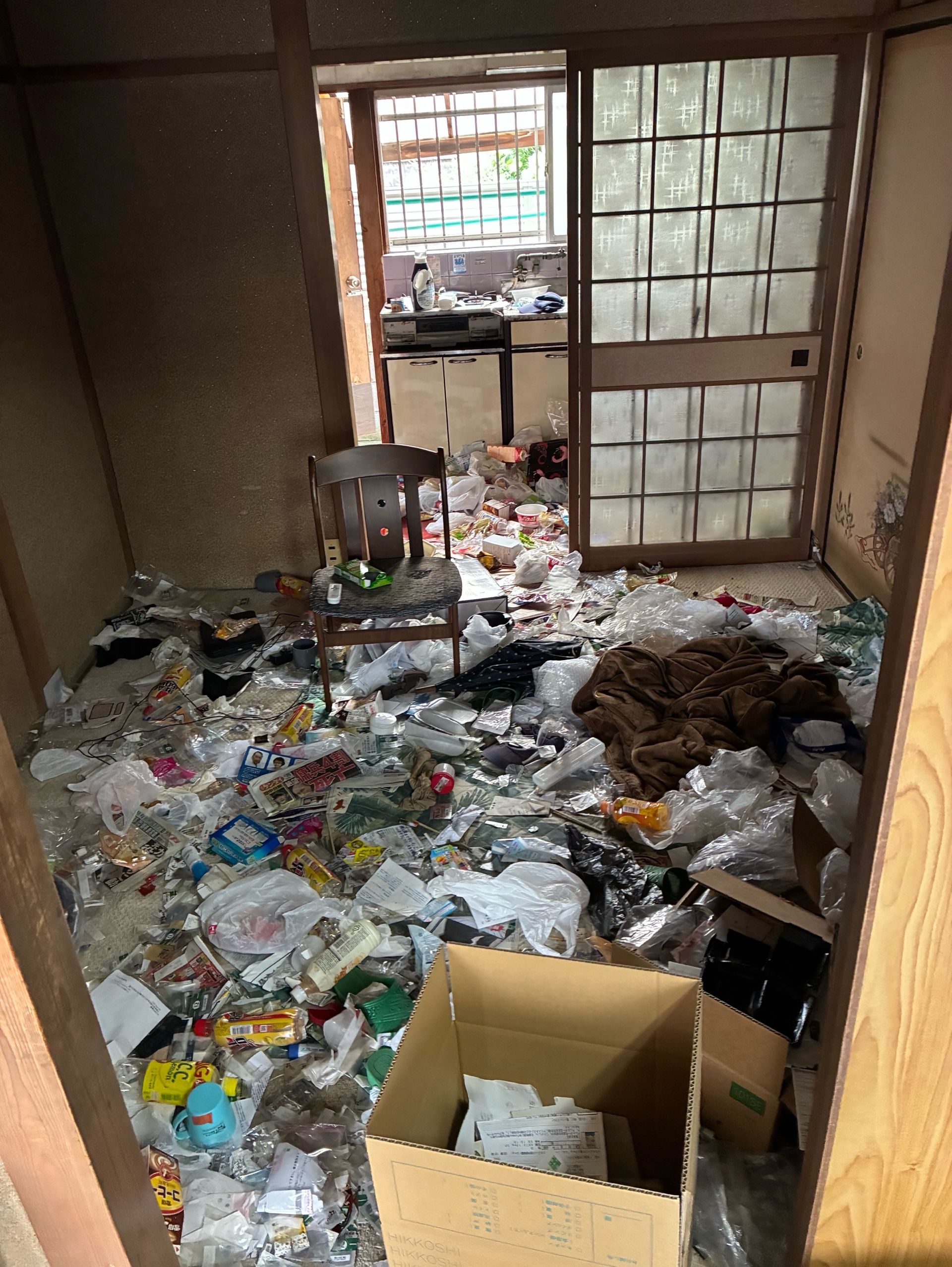 昨日は不動産屋さんからのご依頼でゴミ屋敷の残置物の撤去と清掃をさせていただきました。