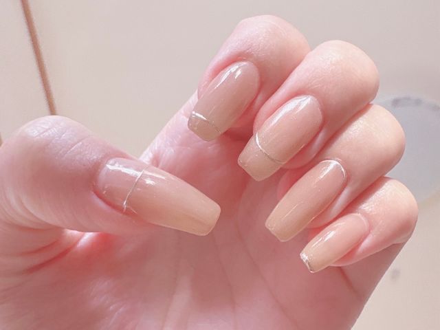 ほんのり色づくカラーグラデーションに、 オーロラパウダーで自然なツヤ感をプラス。 さりげなく上品な、ちゅるんネイル。