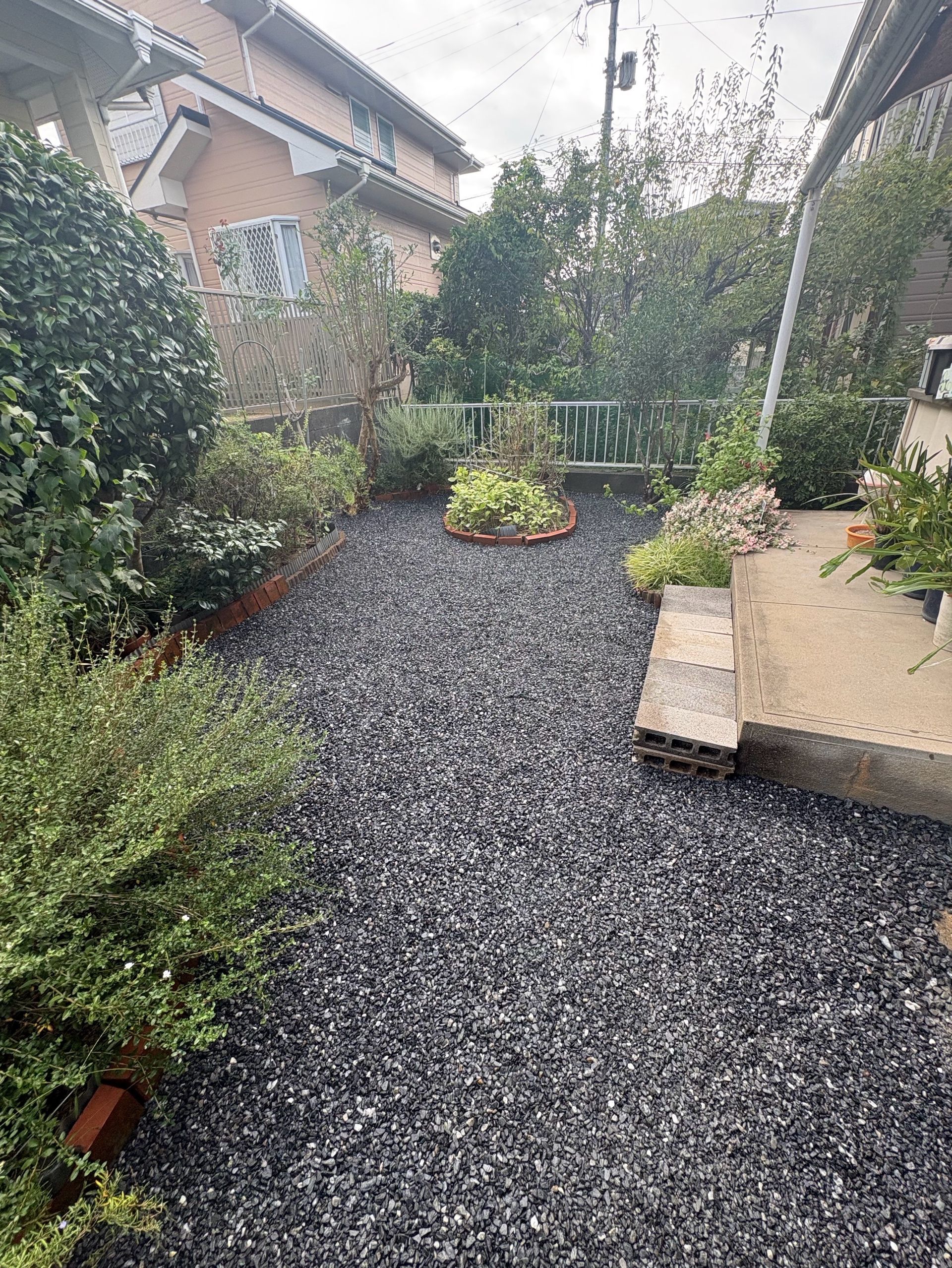 お庭の雑草が生え過ぎてキリがないとのご相談を受け防草シート施工と砂利引きの提案させていただきました!