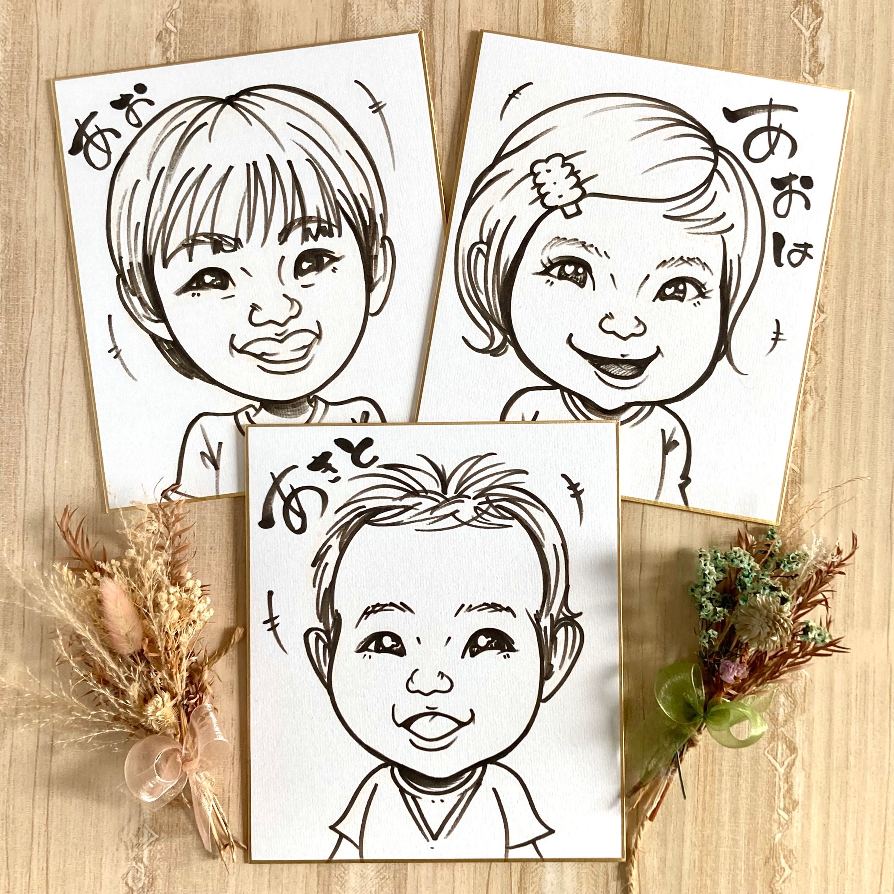 色紙にモノクロの似顔絵を描かせて頂きました。