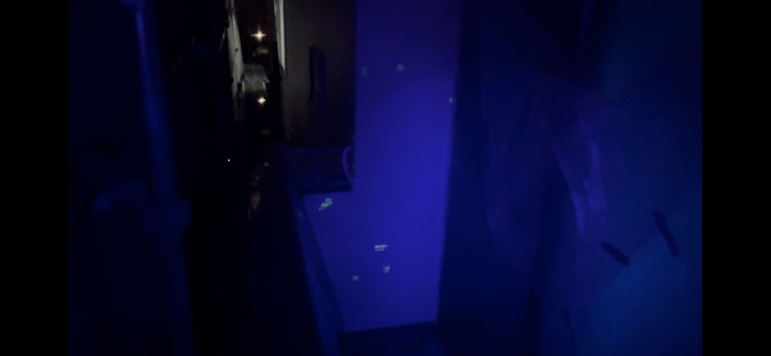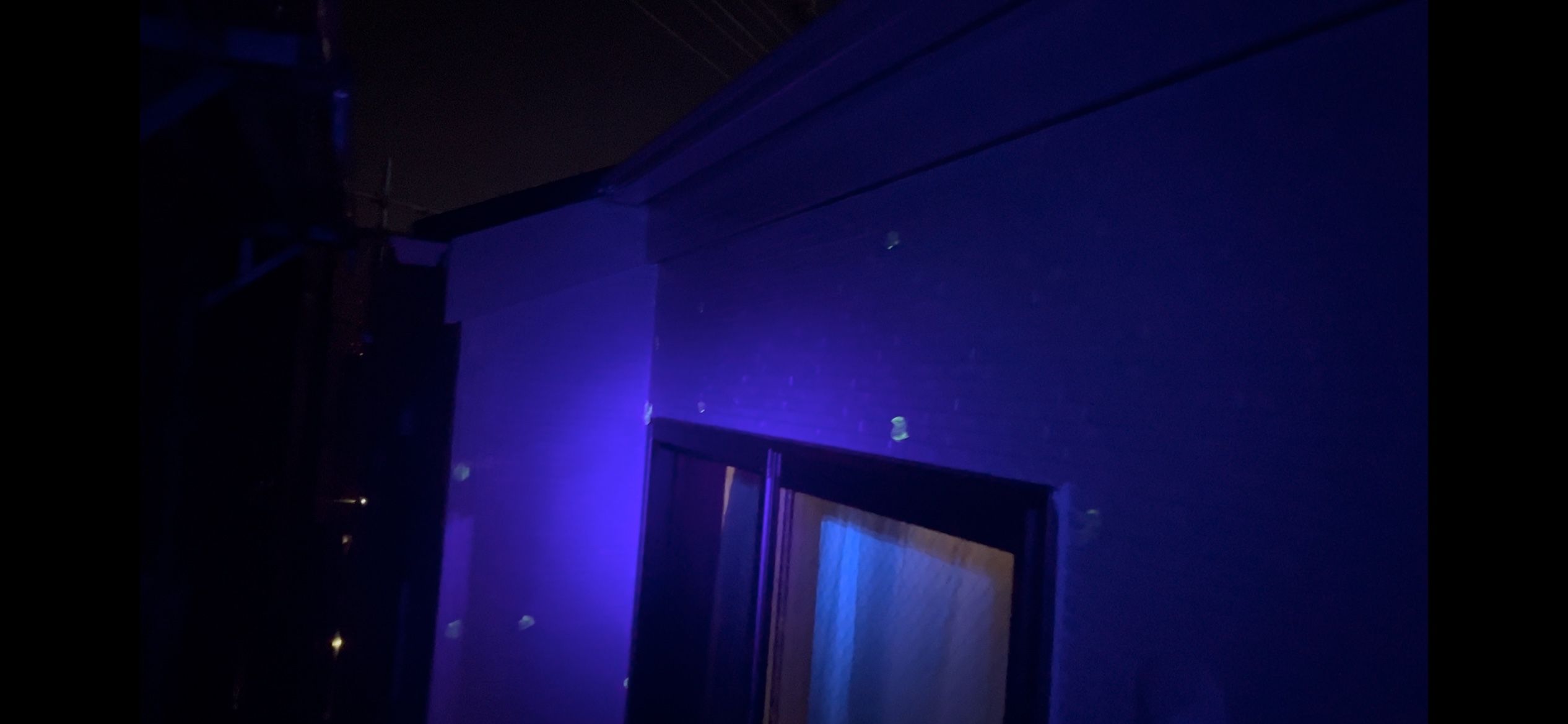 上塗り完了後に、ブラックライト(UV)で再度マーキングを確認します。