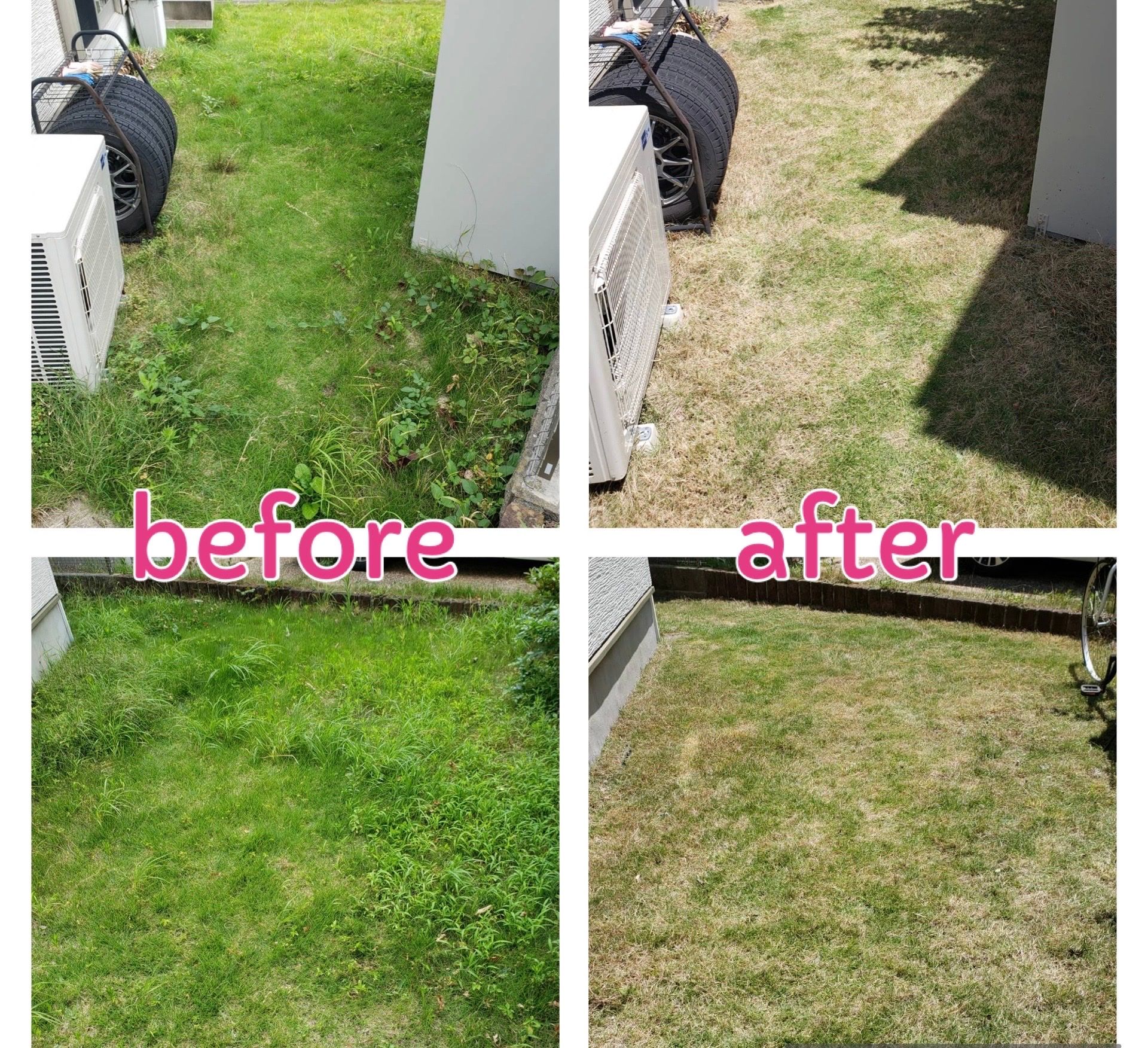 今日は暑い中、スタッフ2人でお庭の草刈りに行ってきました~!