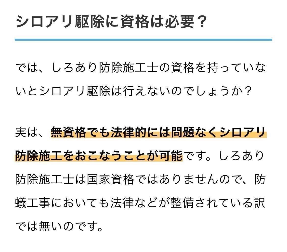 しろあり防除施工士の資格を保有しているからと