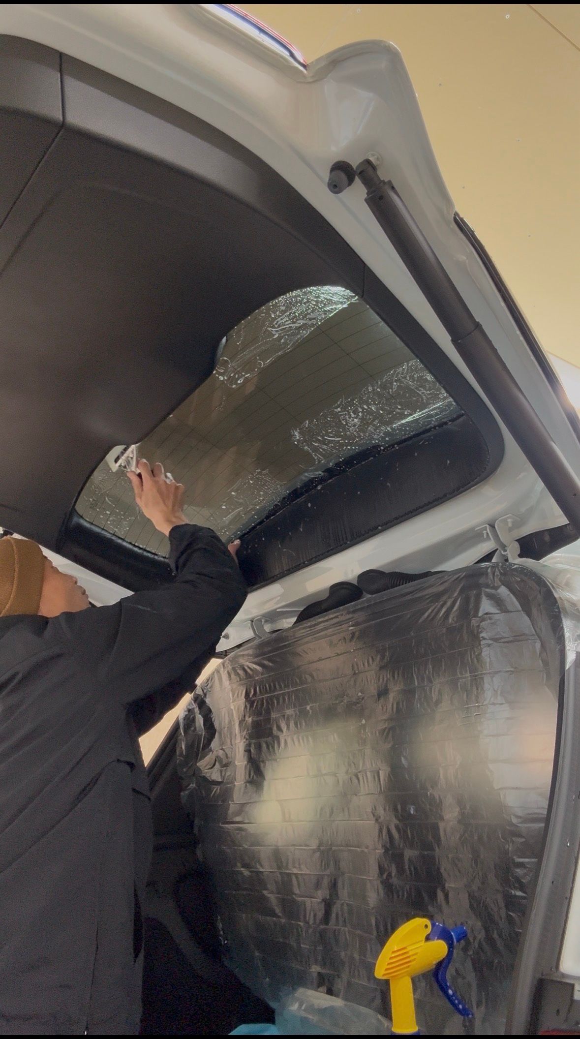 お子様が主に後部座席に乗られるとのことで、プライバシー保護やガラスの飛散防止のためにカーフィルム施工をご依頼いただきました。