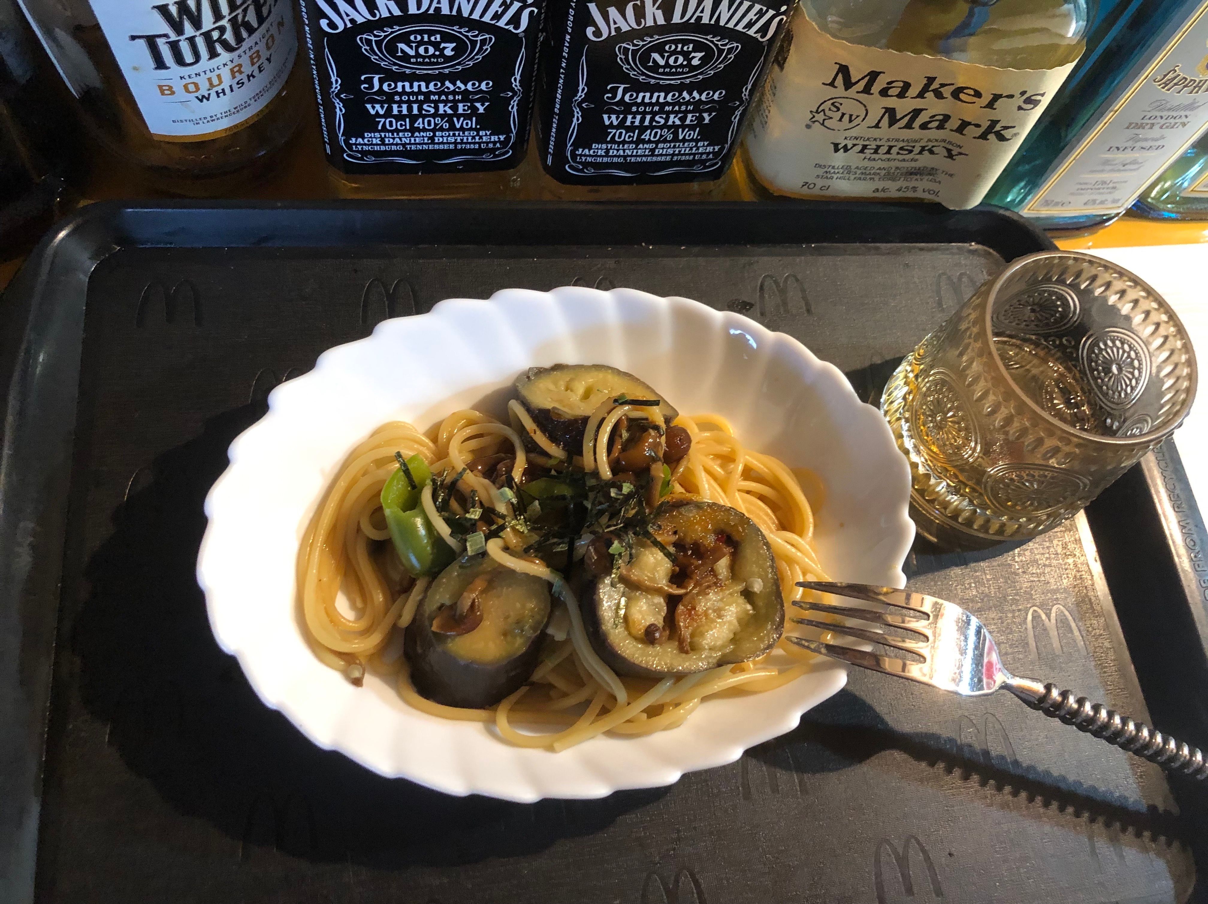 ナス🍆のニンニク🧄醤油パスタ🍝