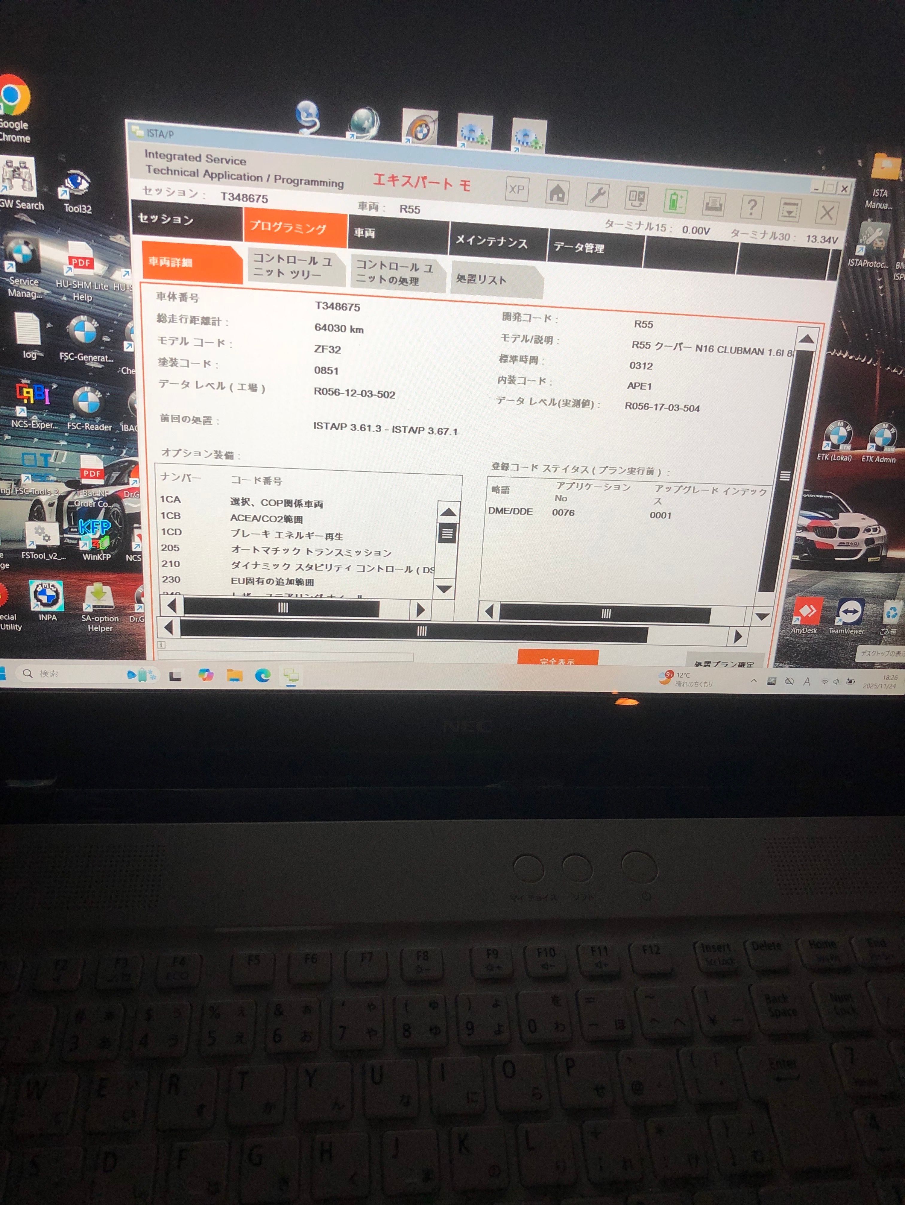 夜間の作業・BMWミニ・CAS交換・コーディング・再プログラミング