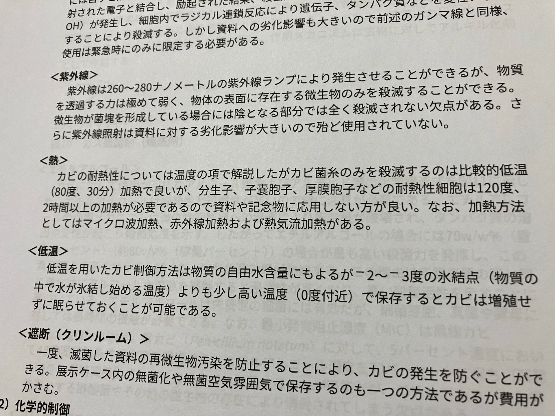 カビにも色々あって、中でもカビの菌糸が一番低温で殺滅できるようで……80℃で30分。