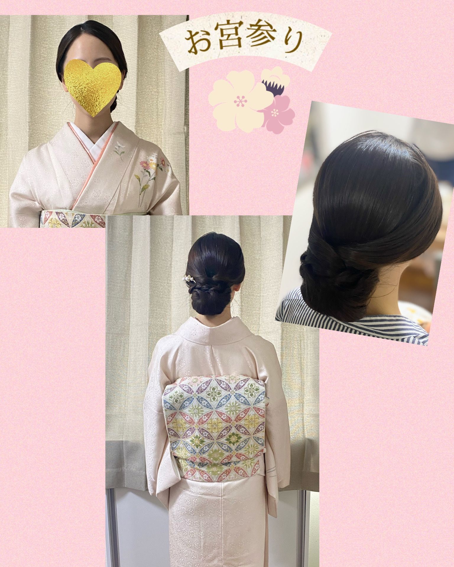 お宮参りの為、お着付けとヘアセットをさせて頂きました。