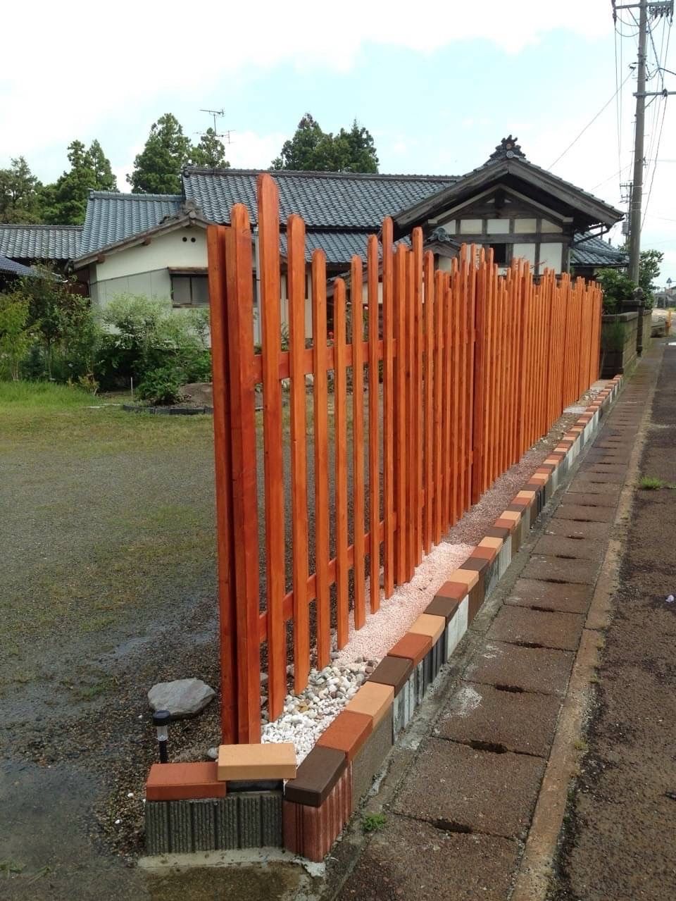 塀を作りましたお洒落に出来ました。下はコンクリートで固めててあります